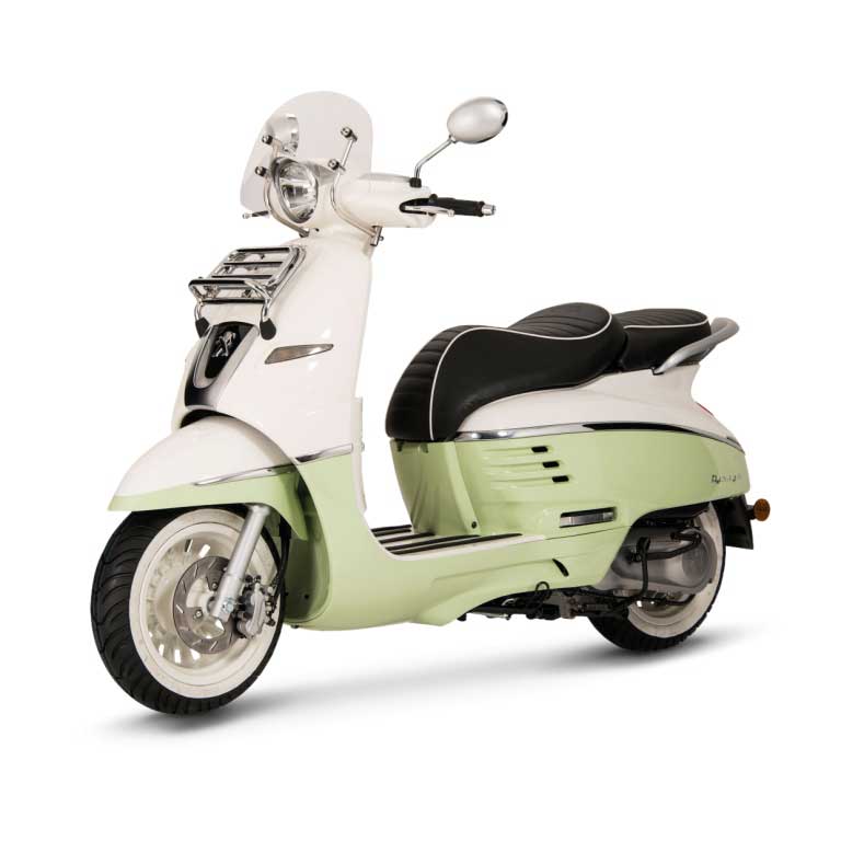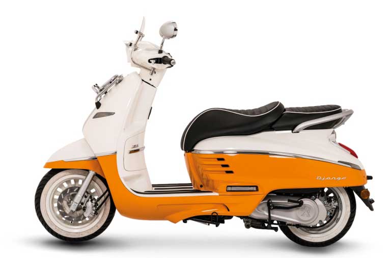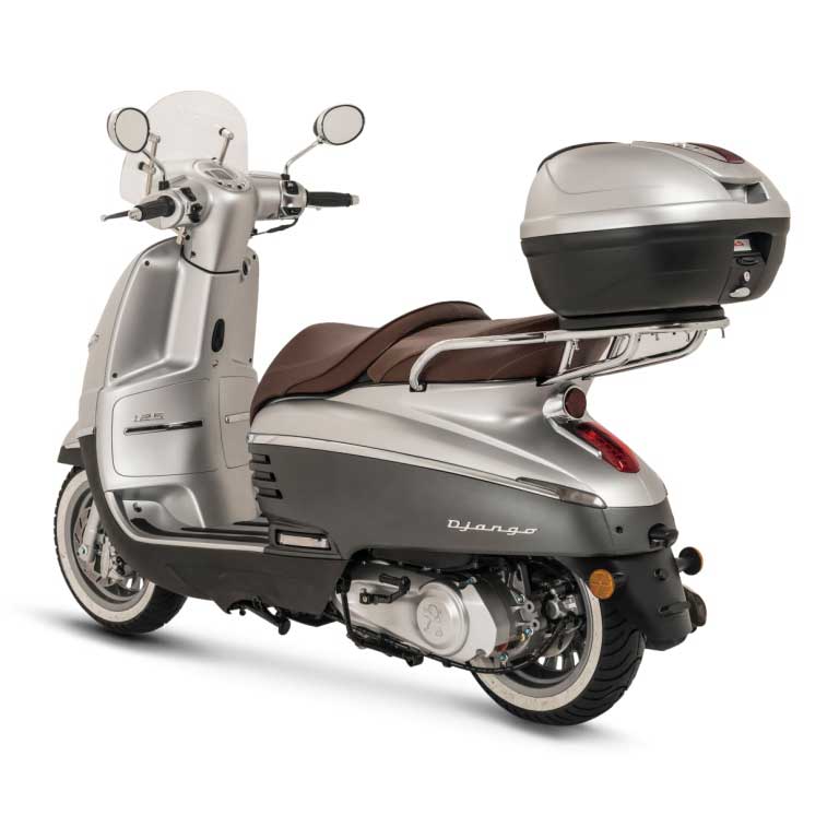 Με σχεδιασμό εμπνευσμένο από τα scooter και τα αυτοκίνητα της Peugeot της δεκαετίας του ’50, το Django εκπέμπει μια ακαταμάχητη γοητεία. Φίνες, κλασικές γραμμές, μοναδικοί χρωματισμοί εποχής, εντυπωσιακές επιφάνειες από χρώμιο και προσεγμένες σχεδιαστικές λεπτομέρειες δημιουργούν το μοναδικό στυλ Django.