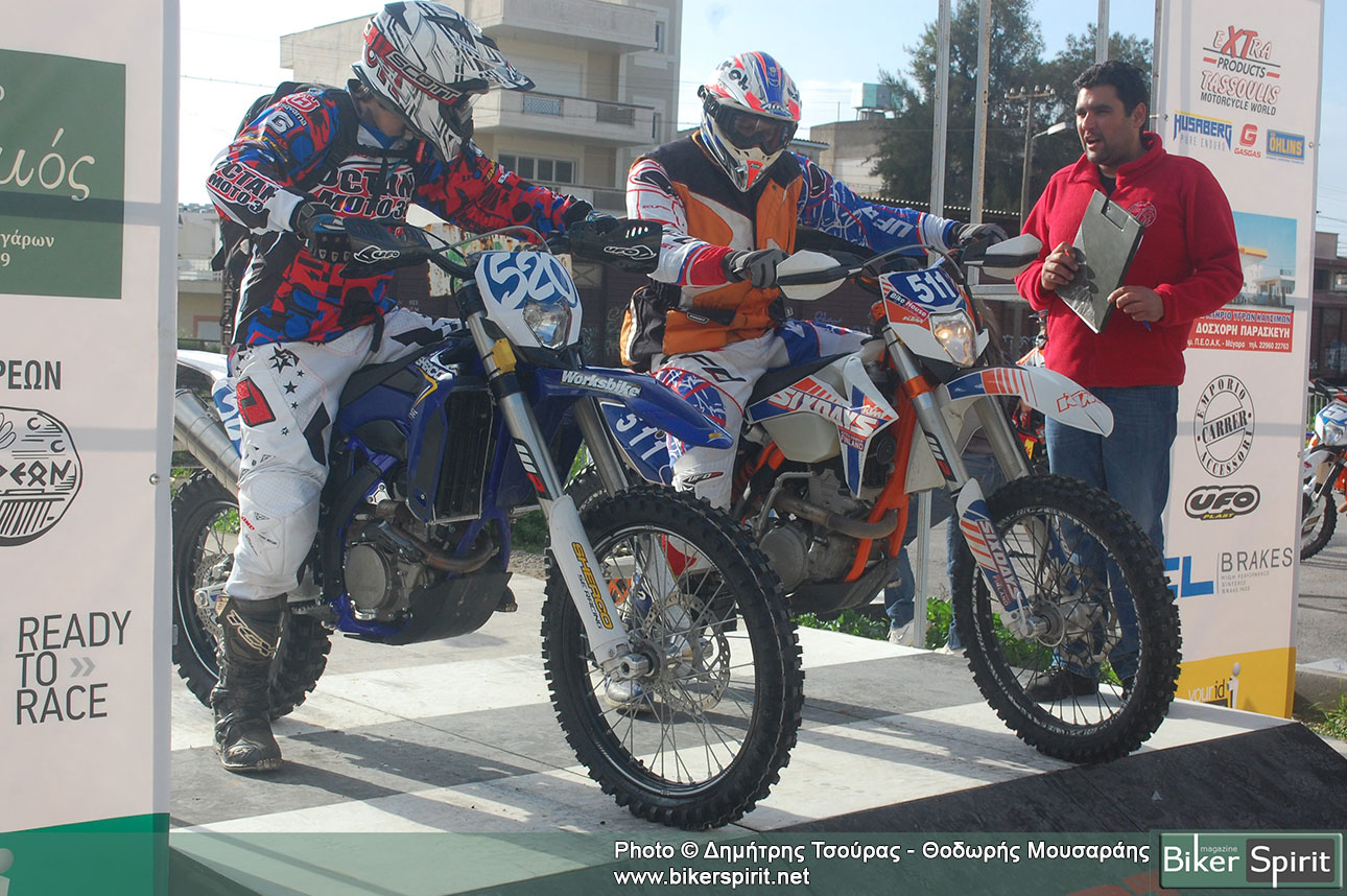 Όσον αφορά το αγωνιστικό κομμάτι, στο Παν. Πρωτάθλημα ο Βασίλης Σιαφαρίκας δίνοντας φοβερές μάχες με το χρονόμετρο κατάφερε να ανέβει στο πρώτο σκαλί του βάθρου παρά την πτώση που είχε στο τρίτο πέρασμα της 2ης ειδικής που μπορούσε να του είχε στερήσει την νίκη. Σε ένα σημείο της ειδικής όπου από τα πολλά περάσματα έγινε γλιστερό έχασαν την πρόσφυση μαζί με τον Σιαφαρίκα και άλλοι δυο αθλητές ο Κυριλης και Τσακατσωνης. Δίνοντας όμως τον καλύτερο εαυτό του στον τελευταία γύρο της πρώτης ειδικής κατάφερε να κρατήσει την πρωτοπορία. Στη δεύτερη θέση του παν.πρωταθληματος με μόλις 0.816 δευτέρα διαφορά από τον Σιαφαρικα βρέθηκε ο Γιάννης Τριγκας ο οποίος θα μπορούσε να κερδίσει τον αγώνα άλλα δεν μπόρεσε να εκκινήσει έγκαιρα την μοτοσυκλέτα του το πρωί στην αφετηρία και δέχτηκε ποινή 10 δευτερολέπτων. Σίγουρα όμως και η δεύτερη θέση για τον αθλητή από τα Τρίκαλα είναι μεγάλη επιτυχία μετά από 2 χρόνια απουσίας στο πανελλήνιο. Την πρώτη τριάδα της γενικής συμπλήρωσε ο έτερος αθλητής από τα Τρίκαλα ο Αλέξης Ζώρας με 2,2 δεύτερα διαφορά από τον πρώτο.