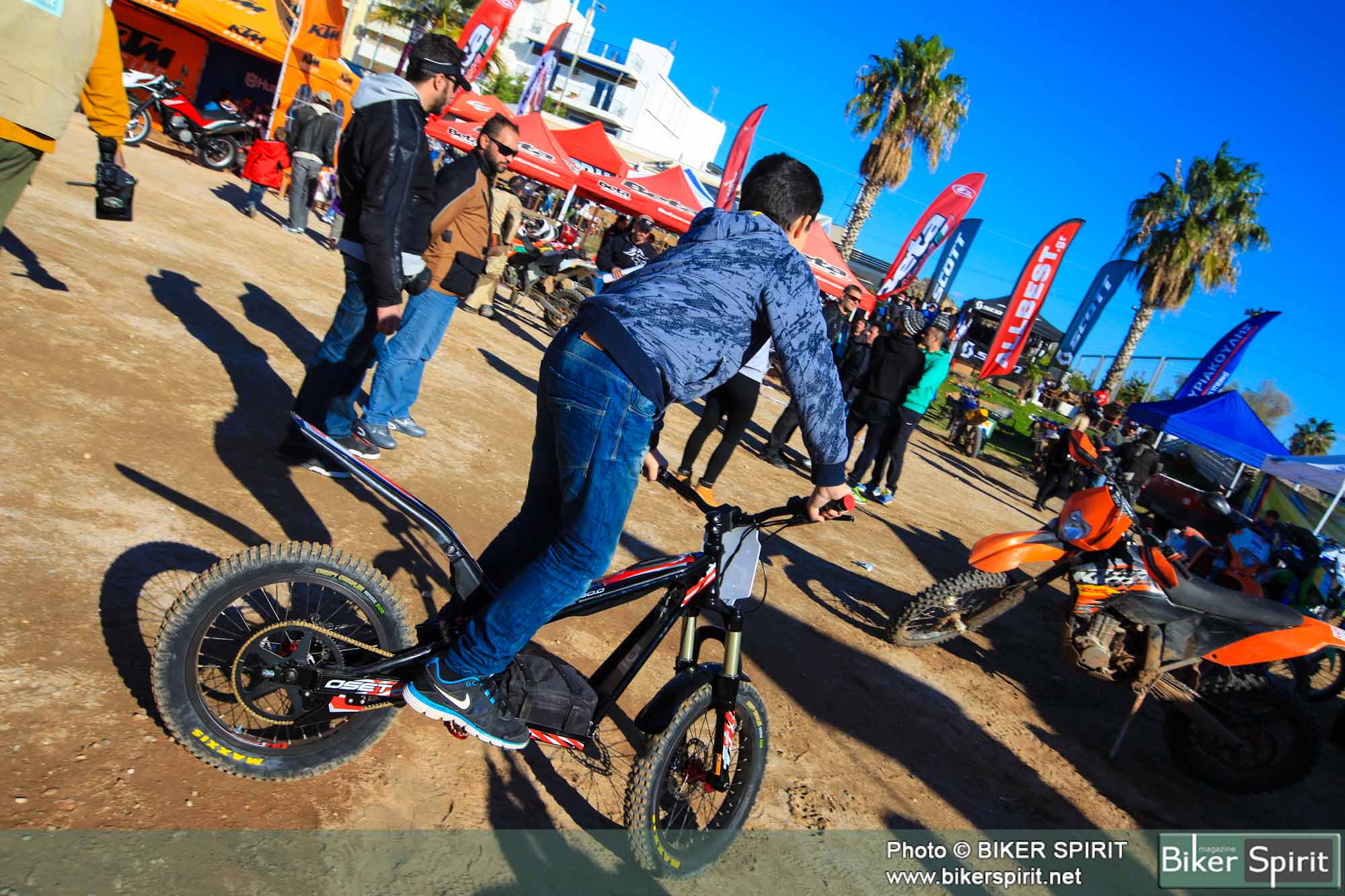 Στον χώρο υπήρχε μια ειδικά διαμορφωμένη μικρή πίστα Trial με τεχνητά εμπόδια, όπως κάδοι, τσιμεντένιοι σωλήνες και ένα αυτοκίνητο,  όπου οι Λευτέρης Καρέτσος, ο Λευτέρης Πίππος και ο Δημήτρης Ζουγανέλης πρόσφεραν ένα μοναδικό θέαμα σε μια επίδειξη Freestyle Trial.