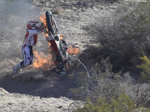 Μοτοσικλέτα φλέγεται στο Dakar. Συγκλονιστικό Video!
