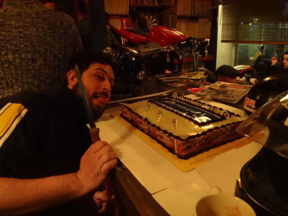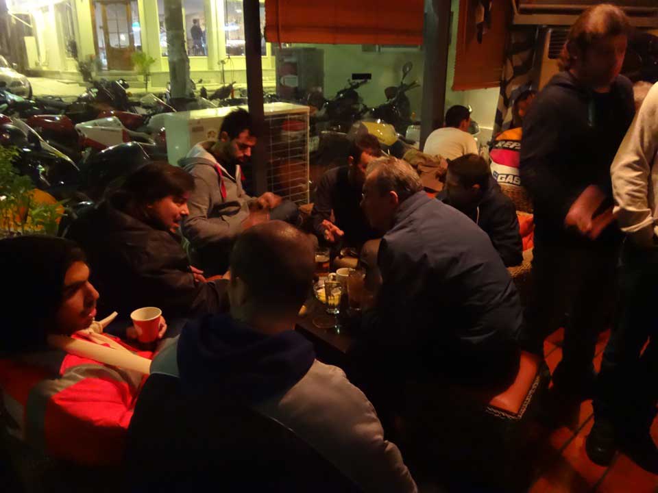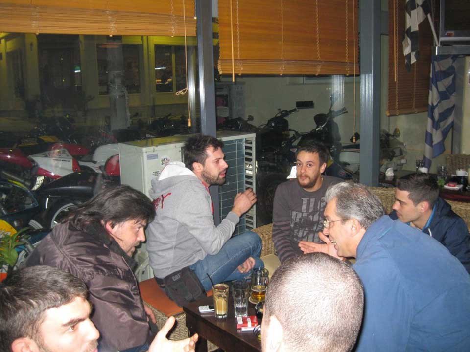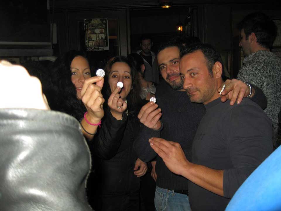 Και με το άλλοθι της κοπής της πίτας για το 2014, ένα τσούρμο διχρονάκιδες άδραξαν την ευκαιρία να τραβήξουν μια ακόμη μανιβελιά και να σχηματίσουν ένα μεγάλο σύννεφο καπνού πάνω από το μαγαζί Pit Stop Cafe στο Κερατσίνι.