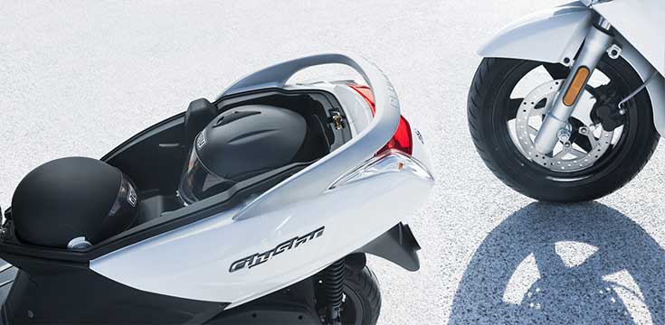 Στην αυξημένη πρακτικότητα του scooterσυμβάλλει ακόμη ο πλούσιος αποθηκευτικός χώρος κάτω από τη σέλα. Ο χώρος επαρκεί για να τοποθετηθούν δύο κράνη, μια παροχή που συναντά κανείς μόνο σε λίγα μεγαλύτερα scooter. Συμπληρωματικές δυνατότητες μεταφοράς αντικειμένων παρέχουν ο γάντζος, το μικρό ντουλαπάκι στην ποδιά και το επίπεδο δάπεδο.