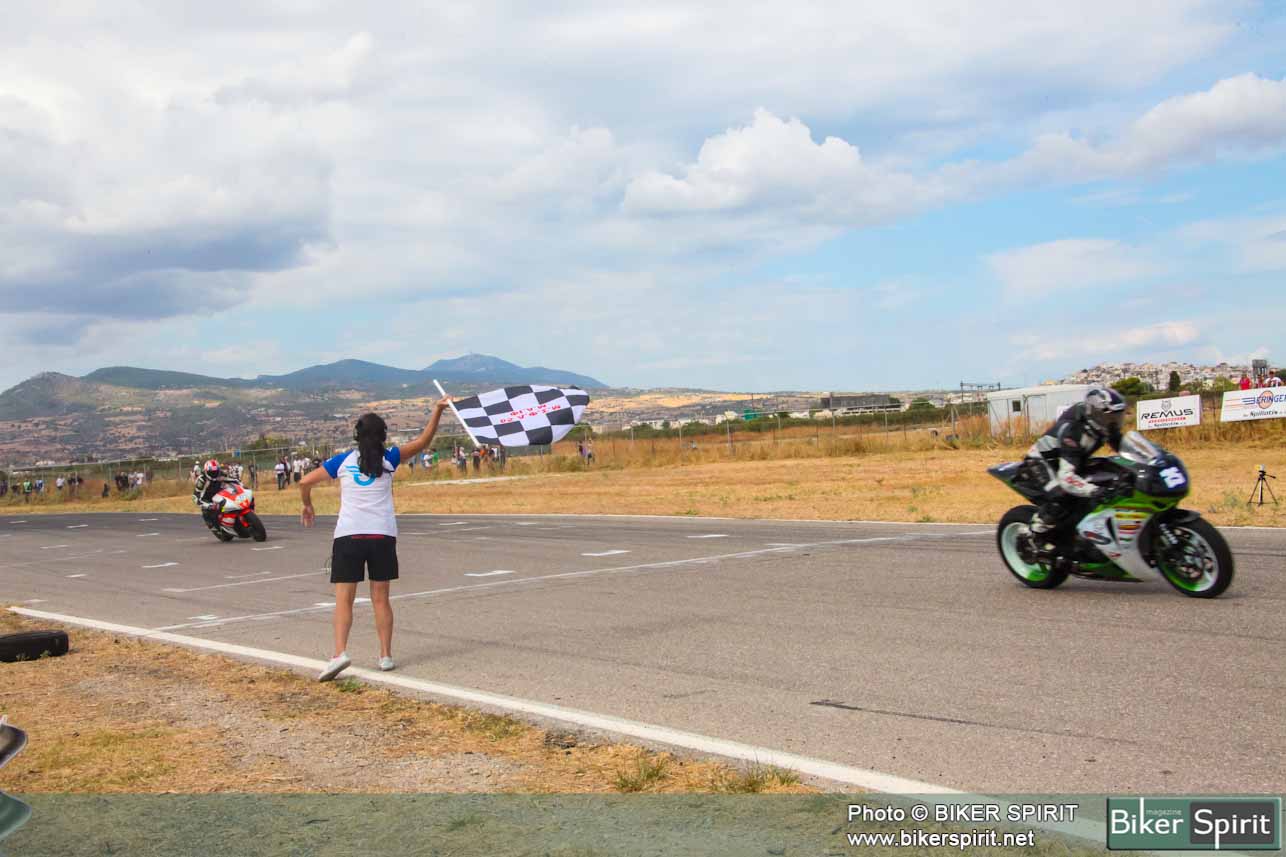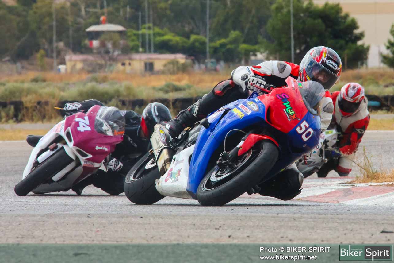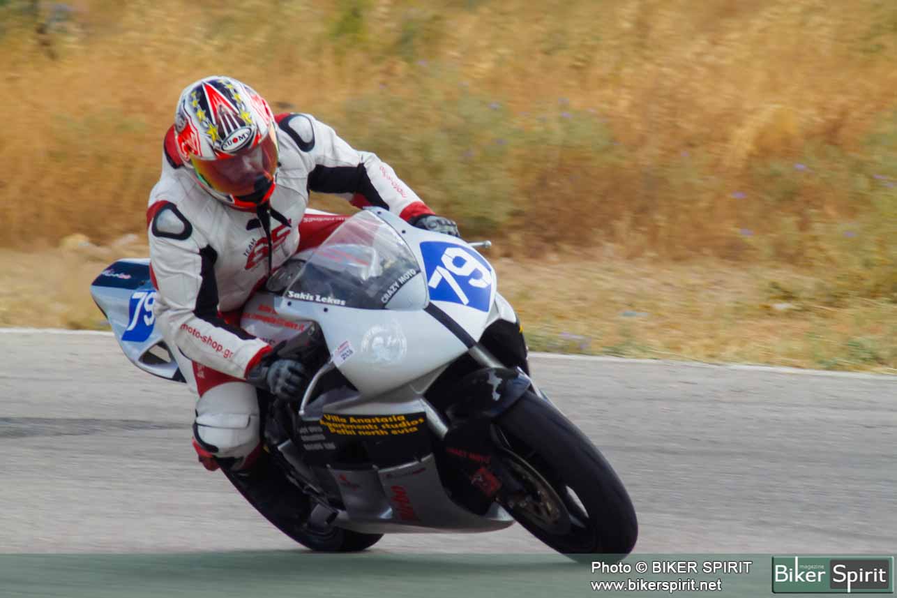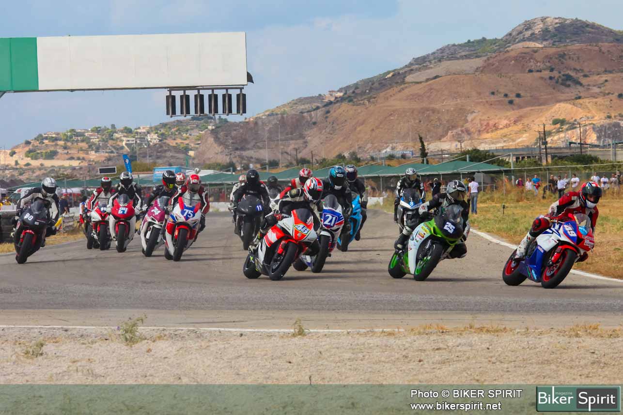 Από την πρώτη θέση στην σχάρα εκκίνησης ξεκίνησε ο Γιώργος Δαραμούσης και ήταν και ο πρώτος που έστριψε στην πρώτη στροφή παίρνοντας αμέσως το κεφάλι του αγώνα. Πίσω του ο Σταύρος Κρεμάλας και Θανάσης Βέλλιος άρχισαν γρήγορα να κάνουν επίθεση στον Δαραμούση που παρόλο ότι οδηγούσε μια μηχανή 600 κυβικών κράτησε τα 1000αρια πίσω του μέχρι τον δεύτερο γύρο οπού στην Κ9 στην γνωστή πλατεία έχασε το μπροστινό του και έπεσε, ευτυχώς χωρίς να χτυπήσει και έτσι την πρωτοπορία την πήρε ο Σταύρος Κρεμάλας με τον Βέλιο πίσω του.