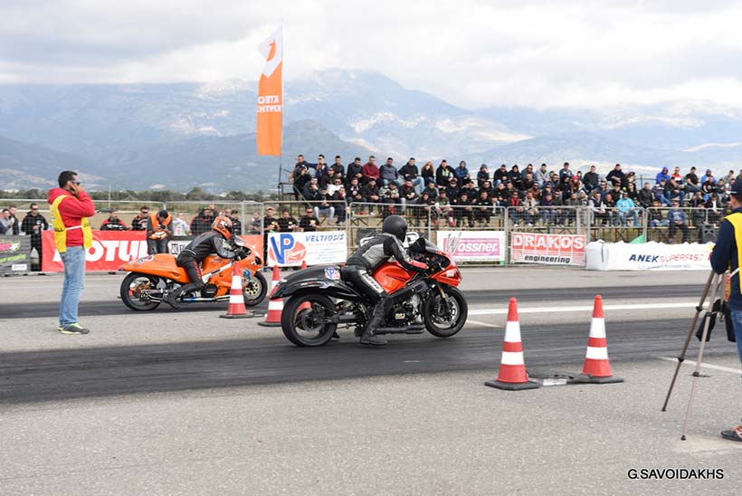 Στις μοτοσυκλέτες έγιναν τρελοί χρόνοι σε όλες τις κατηγορίες με κυριότερους αυτούς του Λαμπροπουλου στην proz και pro street 1 που έσπασε τα πανελλήνια ρεκόρ , ο Μαυροματης για την super street με 7,7 !!! έσπασε κατα πολύ το πανελλήνιο και αυτός και τέλος ο Πρεμετης που με σταθερά περάσματα έφτασε στα 7,5.