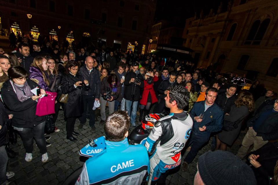 Ο Ιταλός οδήγησε την MotoGP μοτοσυκλέτα του από την Piazza Venezia (όπου βρίσκεται το μνημείο Vittorio Emanuele II) μέσω της Via Del Corso (κεντρικό εμπορικό δρόμο της Ρώμης) για να φτάσει στην Piazza San Silvestro
