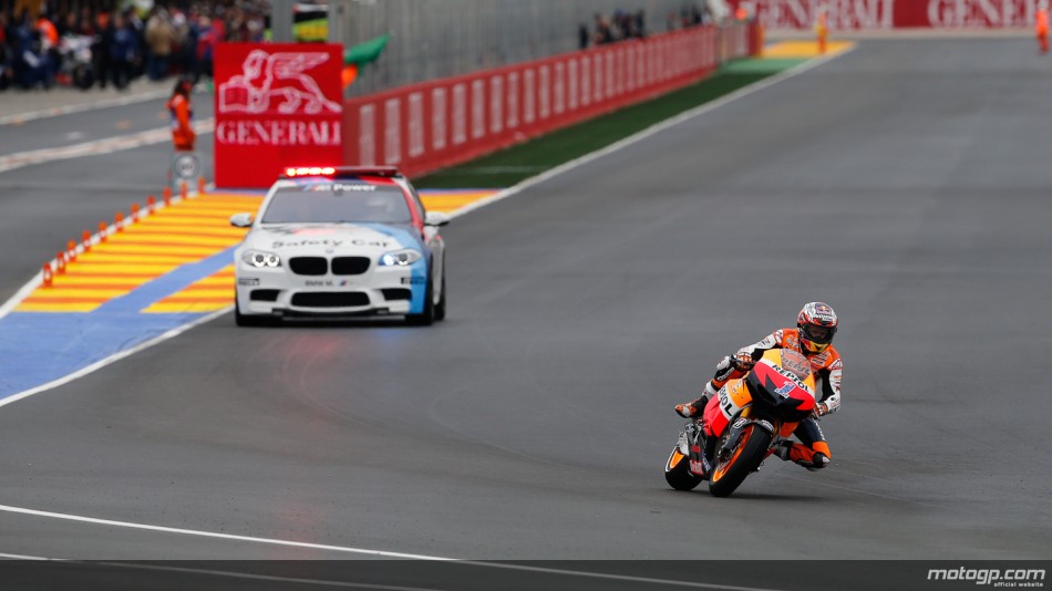 Στoν τελευταίο αγώνα του MotoGP σην Valenciana ήταν ο Dani Pedrosa με την Repsol Honda αυτός που πήρε τη νίκη σε ένα δραματικό αγώνα που ήταν γεμάτος από συντριβές, με δεύτερο τον Katsuyuki Nakasuga που έκανε την μεγάλη έκπληξη και τρίτο τον Casey Stoner, ο οποίος αποχαιρέτησε με ένα βάθρο τα MotoGP.