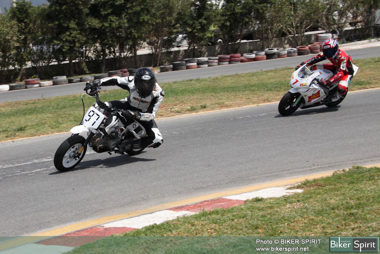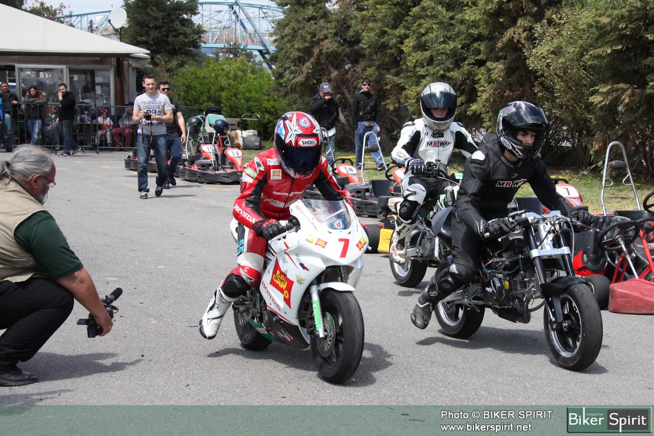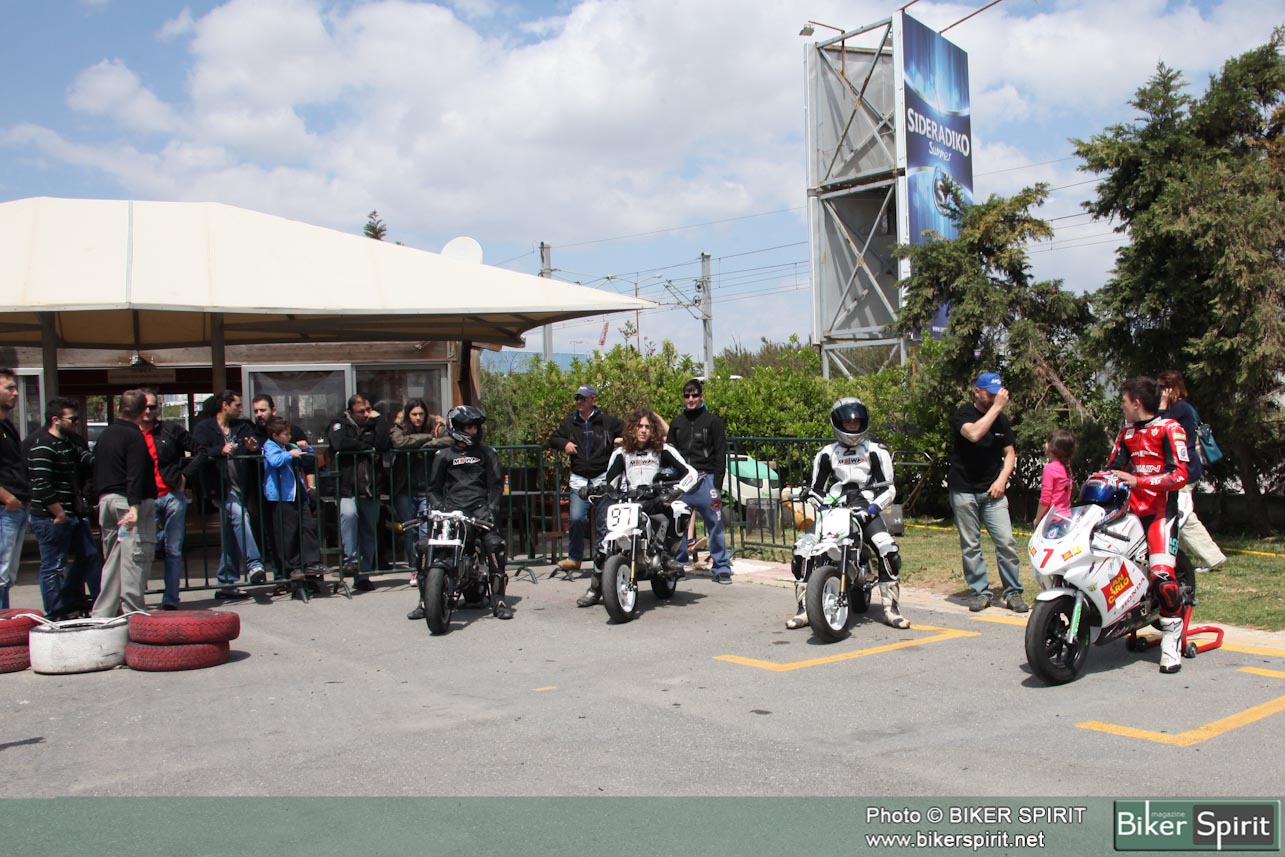 Μετά την «θεωρητική» παρουσίαση περάσαμε στην πιστά όπου τέσσερις νέοι οδηγοί οδήγησαν τις «MiniGP» μοτοσικλέτες τους και πρόσφεραν το ανάλογο θέαμα που όλοι περίμεναν και όλοι ελπίζουμε να δούμε στους τρεις αγώνες που θα γίνουν το 2013. Ανάμεσα τους και ο Νότης Παπαπαύλου που έτρεξε με την μοτοσικλέτα που έχει λάβει μέρος στο Ιταλικό Πρωτάθλημα.