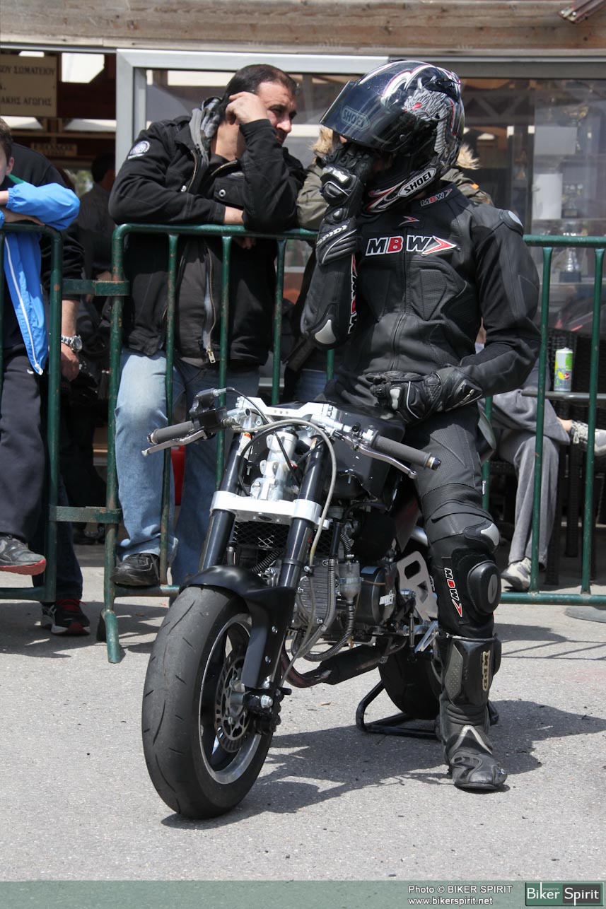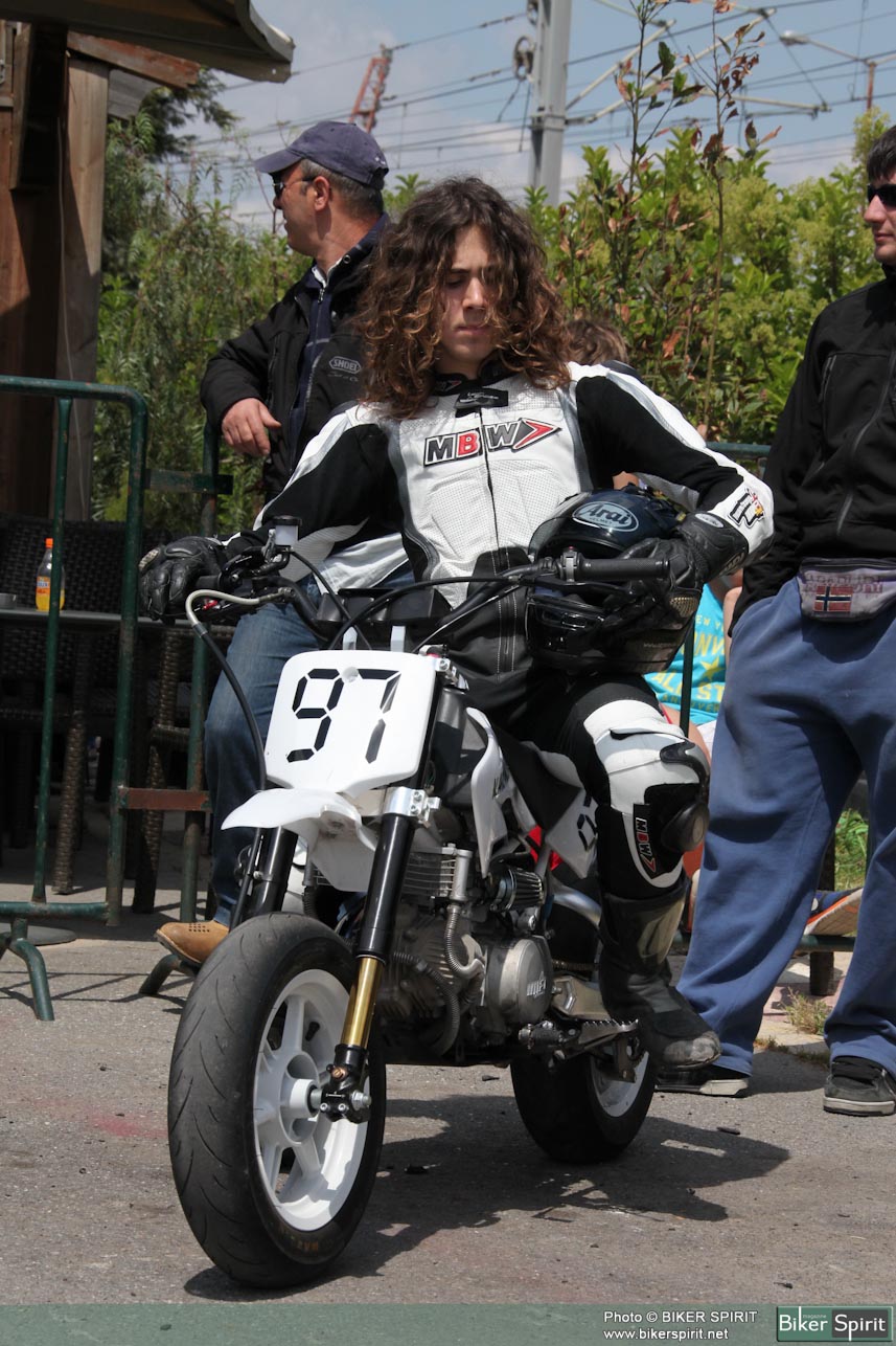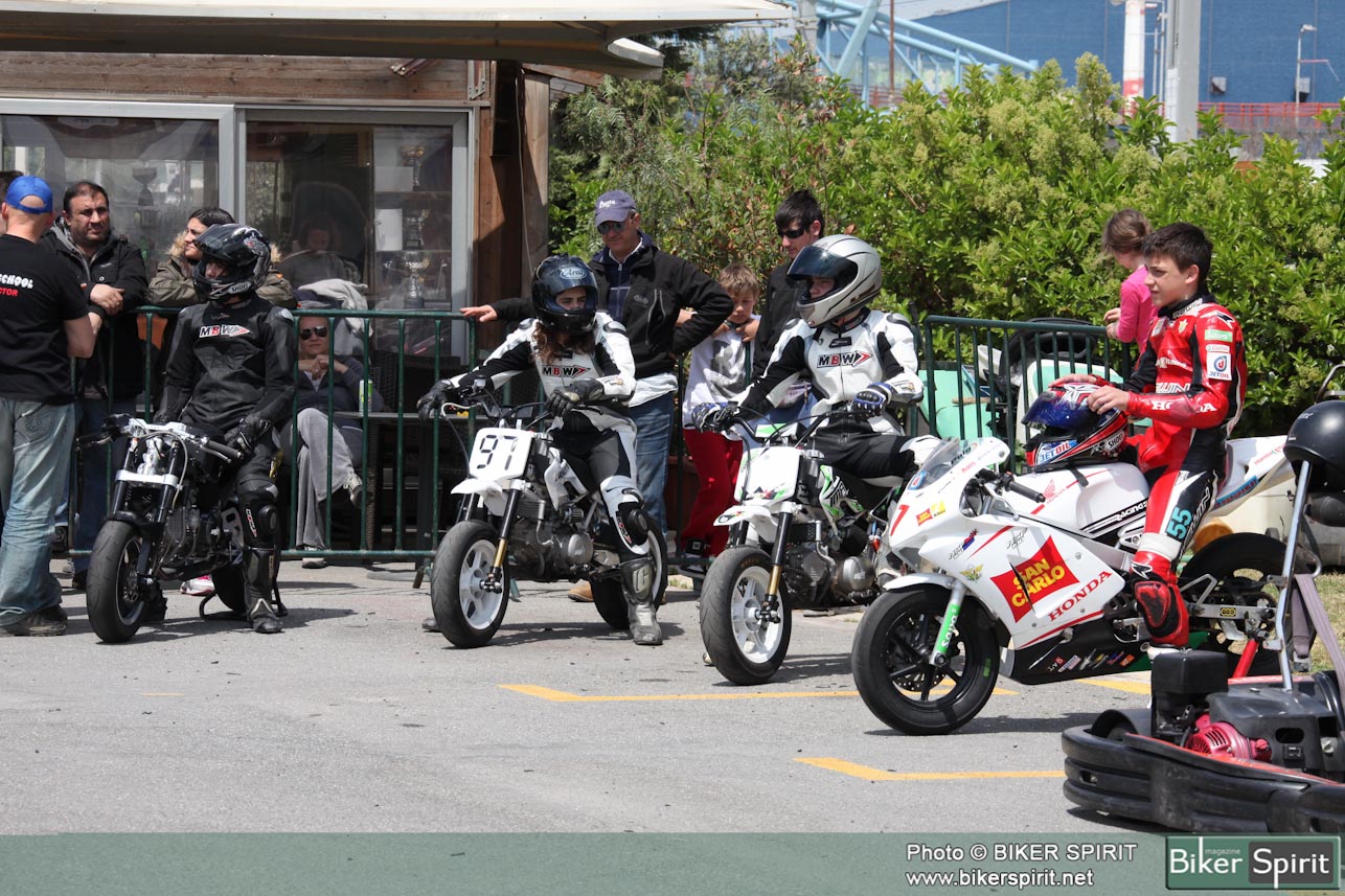 Μετά την «θεωρητική» παρουσίαση περάσαμε στην πιστά όπου τέσσερις νέοι οδηγοί οδήγησαν τις «MiniGP» μοτοσικλέτες τους και πρόσφεραν το ανάλογο θέαμα που όλοι περίμεναν και όλοι ελπίζουμε να δούμε στους τρεις αγώνες που θα γίνουν το 2013. Ανάμεσα τους και ο Νότης Παπαπαύλου που έτρεξε με την μοτοσικλέτα που έχει λάβει μέρος στο Ιταλικό Πρωτάθλημα.
