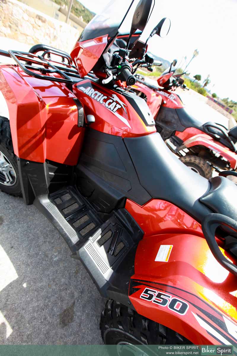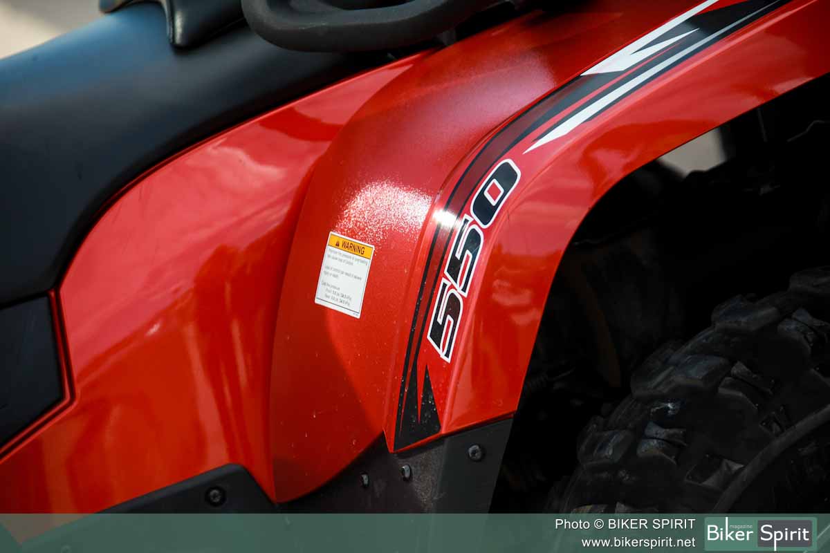 Το πρώτο ATV που οδηγήσαμε ήταν το TRV550iXT, το TRV είναι ο κωδικός που σημαίνει Two Rider Vehicle δηλαδή όχημα για δυο επιβάτες. Το συγκεκριμένο ATV έχει μακρύ σασί κατά 20 εκατοστά και είναι ειδικά σχεδιασμένο να χωράει άνετα 2 άτομα η για να κάνει κάποια βαριά εργασία.. Προσφέρει άνεση τύπου μεγάλων τουριστικών μοτοσικλετών με αρκετή δύναμη που δεν θα σου λείψει πουθενά όταν κινείσαι με αυτό το όχημα.
