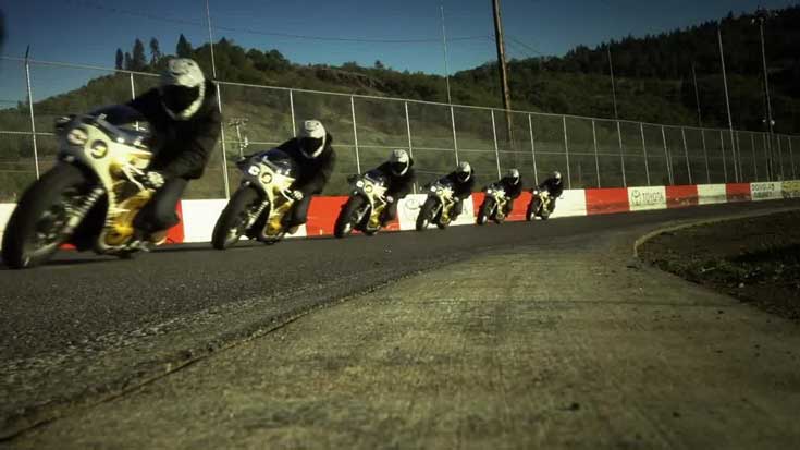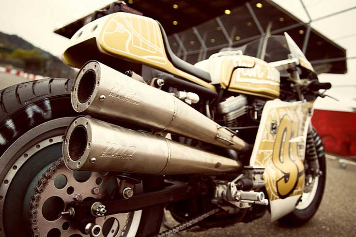 Αντικαταστήσανε το πιρούνι με ένα πολύ μεγαλύτερο για να χωρέσει το ογκώδες μπροστινό ελαστικό, προσαρμόσανε το φέρινγκ, μετακίνησαν το ντεπόζιτο και βγάζοντας την “γελοια” κόρνα που έμοιαζε σαν εξάτμιση, φτίαξανε ένα “ιδιαίτερο” μηχανάκι που ξεχειλίζει όμως αληθινό αγωνιστικό χαρακτήρα .