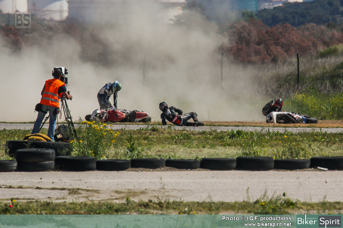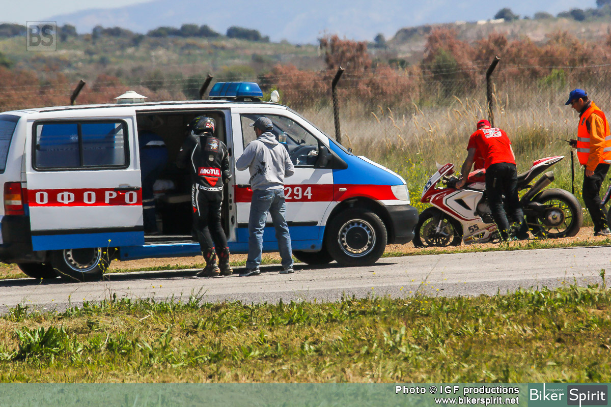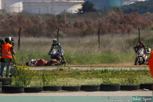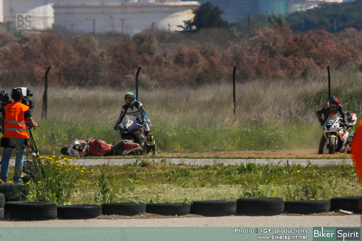 Ο αγώνας διακόπηκε στον δεύτερο γύρο με κόκκινη σημαία λόγω πτώσεις οδηγών και έπρεπε να μπει ασθενοφόρο για να μεταφέρει τον τραυματία οδηγό! Τρεις οδηγοί έπεσαν στην Κ6, Σπερελάκης Παπαγγέλου και Ευθυμίου, με αποτέλεσμα ο Βασίλης Ευθυμίου να τραυματιστεί, σπάζοντας την κλείδα του.