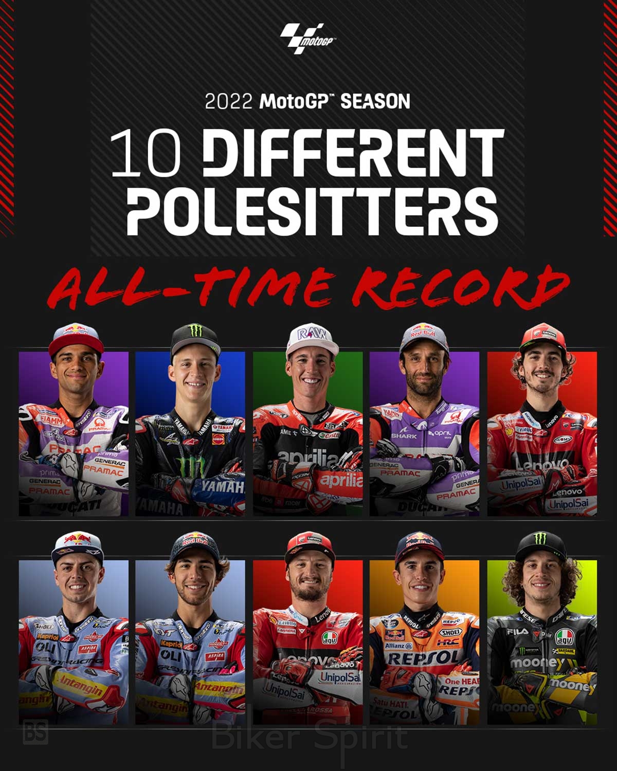 2- Ο Bezzecchi έγινε ο 10ος διαφορετικός polesitter από τον εναρκτήριο αγώνα της σεζόν στο Κατάρ, επεκτείνοντας το ρεκόρ για τον υψηλότερο αριθμό διαφορετικών polesitter σε μία σεζόν στην πρώτη κατηγορία (από το 1974 που άρχισαν να καταγράφονται επίσημα οι pole positions).