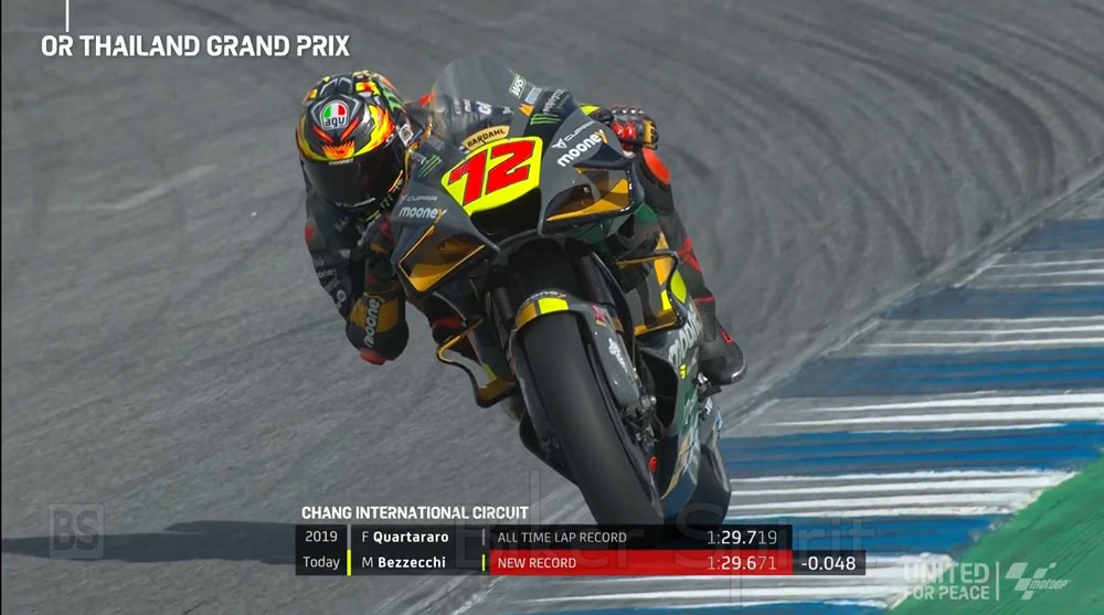 1- Ο Marco Bezzecchi πήρε την παρθενική του pole position στο MotoGP™ σημειώνοντας νέο ρεκόρ γύρου στο Buriram, ενώ έγινε επίσης ο δεύτερος πρωτάρης που προκρίθηκε στην pole position μέχρι στιγμής φέτος μαζί με τον Fabio Di Giannantonio (Gresini Racing MotoGP™) στο ιταλικό GP. Αυτή είναι η πρώτη φορά που υπάρχουν δύο πρωτάρηδες (ή περισσότεροι) στην pole position σε μία σεζόν στην πρώτη κατηγορία από το 2006. Ο Dani Pedrosa, ο Chris Vermeulen και ο Casey Stoner το έκαναν τότε.
