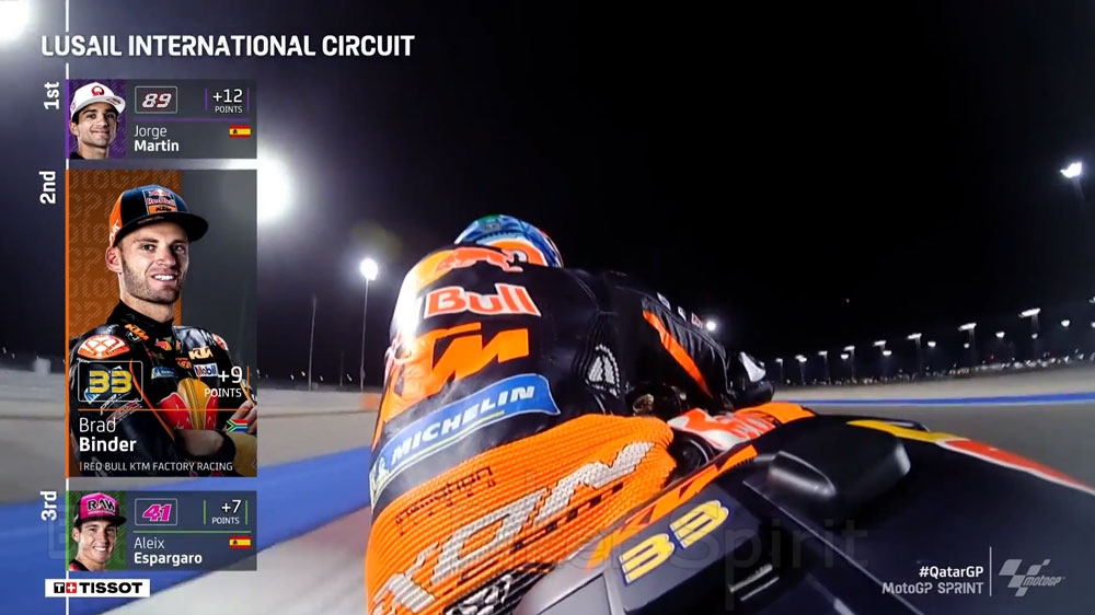 6- Ο Brad Binder τερμάτισε δεύτερος στο Sprint (όπως στο τελευταίο Sprint πέρυσι στη Βαλένθια) και τώρα θα στοχεύει να κερδίσει την πρώτη του νίκη στο MotoGP, από την Αυστρία το 2021. Αν το καταφέρει θα είναι η πρώτη νίκη της KTM στην κορυφαία κατηγορία στο Κατάρ.