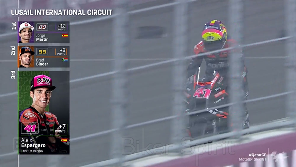 3- Ο Bastianini, ο οποίος έκανε την παρθενική του νίκη στο MotoGP στο Κατάρ το 2022, στις κατατακτήριες τέλειωσε τρίτος για να ξεκινήσει από την πρώτη σειρά και ήταν από τις καλύτερες κατατακτήριές του, από όταν προκρίθηκε επίσης τρίτος στο Sepang πέρυσι, όταν και πήρε και τη τελευταία του νίκη του στο GP. Τερμάτισε στην 6η θέση στο Sprint και τώρα θα έχει ως στόχο να πάρει την έκτη του νίκη στην κατηγορία.