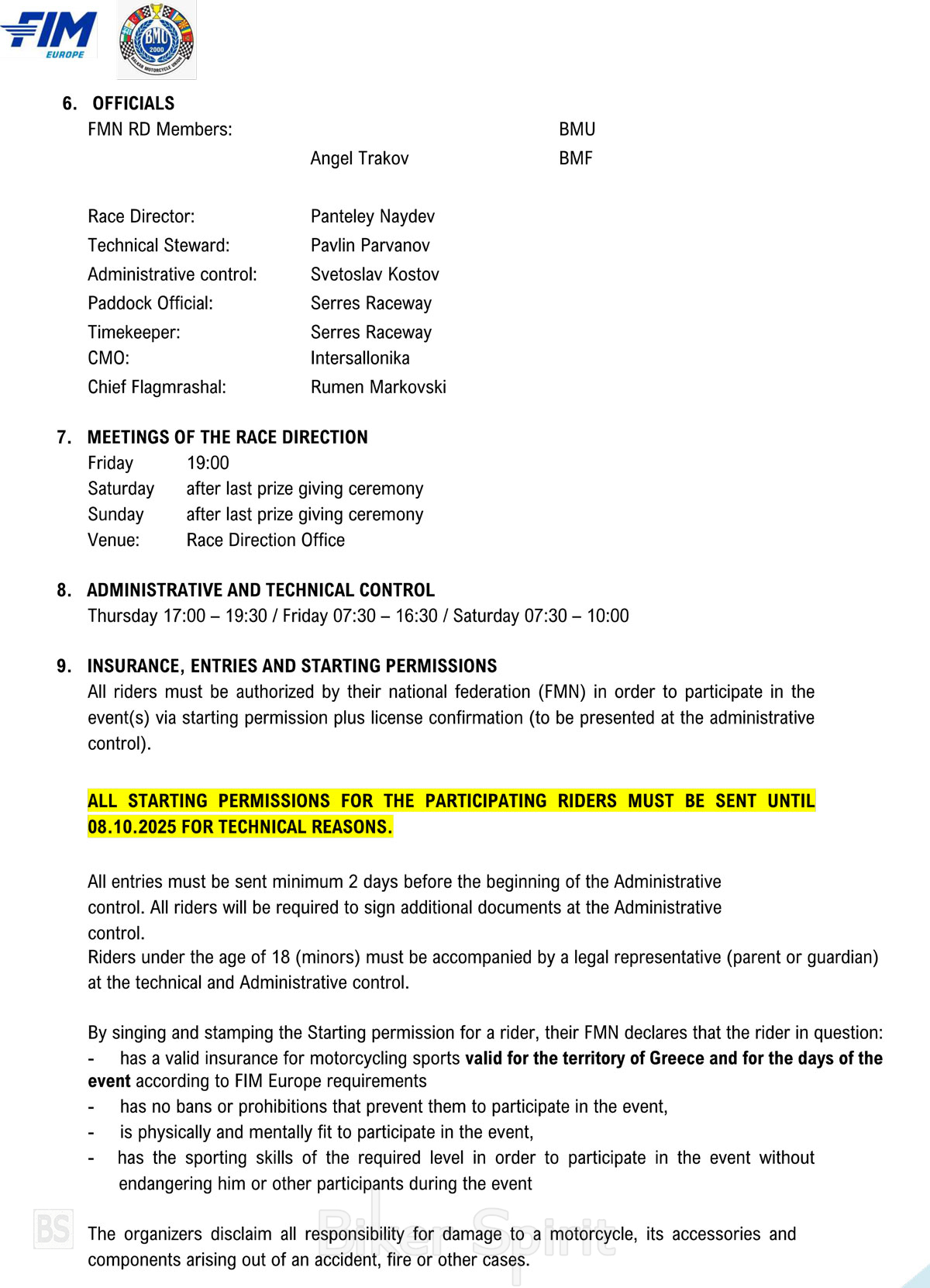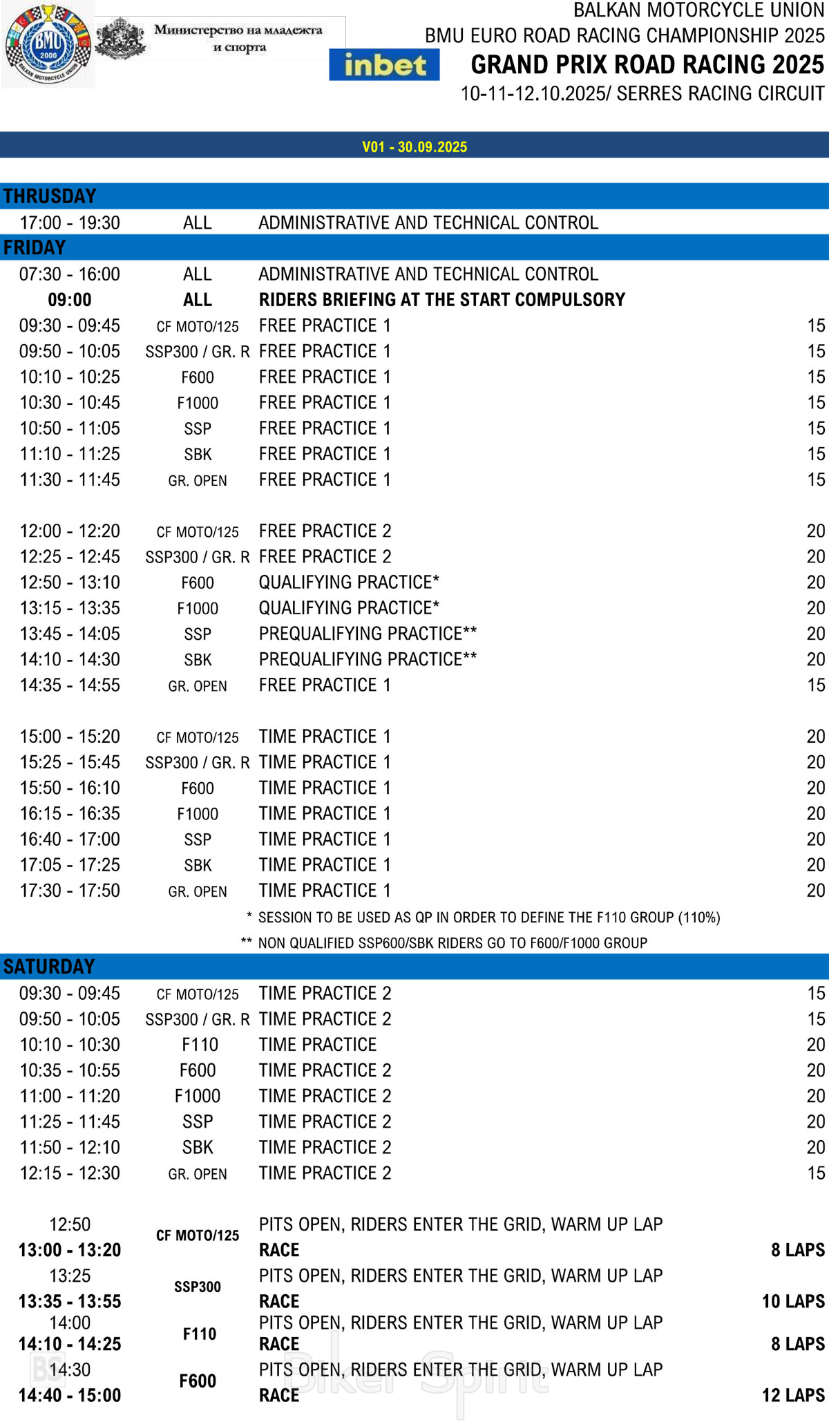 15ος & 16ος αγώνας Βαλκανικού πρωταθλήματος ταχύτητας BMU στις Σέρρες από τις 10 έως 12 Οκτωβρίου 2025 – ΠΡΟΓΡΑΜΜΑ & ΕΙΔΙΚΟΣ ΚΑΝΟΝΙΣΜΟΣ