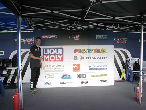 Ένα μεγάλο ευχαριστώ από την ομάδα Yamaha Tsokos Racing στους χορηγούς της που είναι: Τα Λιπαντικά – Πρόσθετα – Βελτιωτικά LIQUI MOLY που αντιπροσωπεύονται και διατίθεται σε Ελλάδα και Κύπρο από την εταιρεία Ε.ΣΚΑΖΙΚΗΣ – Λ.ΜΑΡΑΓΚΟΣ Α.Ε. Τα Λιπαντικά Μοτοσυκλέτας για την Ελλάδα διατίθενται επίσημα από την εταιρεία Π.ΒΑΛΕΝΤΗΣ – Γ.ΨΥΧΟΓΙΟΣ Α.Ε, ενώ συνεχίζοντας με τους υπόλοιπους χορηγούς έχουμε την εταιρεία PERISTERAS ελαστικά μοτο, του κ. Νίκου Περιστερά με ελαστικά DUNLOP και κουβέρτες ελαστικών CHICKEN HAWK, την εταιρεία DUNLOP μέσω του κ. Δημήτριου Δημητρόπουλου, την YAMAHA μέσω του επίσημου εκπροσώπου της στην Ελλάδα, την εταιρεία ΜΟΤΟΔΥΝΑΜΙΚΗ Α.Ε.Ε., χορηγός επικοινωνίας της ομάδας, είναι το περιοδικό MOTOGP WORLD του κ. Δημήτρη Διατσίδη, το ηλεκτρονικό περιοδικό Biker Spirit, την τηλεοπτική εκπομπή MOTO & BIKE TV, την εταιρεία CL Brakes – KOSTPART του κ. Σταμάτη Κοντογιάννη για τα φρένα, την εταιρεία AFAM ΤΑΣΟΥΛΗΣ αλυσίδες-γρανάζια, την εταιρεία ERMAX ΓΕΩΡΓΟΠΟΥΛΟΣ ζελατίνες, την εταιρεία MOURATIS GP – SEBIMOTO για τα φαίρινγκ της μοτοσυκλέτας, την εταιρεία RACE TECH του κ. Παπαγιάννη για τις εξατμίσεις, την εταιρεία VGR Team Γεωργακόπουλος για τις αναρτήσεις, τον κ. Μάνο Πετρόπουλο για την διαχείρηση των ηλεκτρονικών της μοτοσυκλέτας, την εταιρεία BIZZARE STICKERS του κ. Ηρακλή Λεοντή για τα αυτοκόλλητα, τα πανό και τις σημαίες της ομάδας, την εταιρεία X Large του κ. Στέλιου Δημητριάδη για το ανανεωμένο εσωτερικό των paddock της, το φυσικοθεραπευτήριο Φυσιολύσις, το γυμναστήριο TOTAL Power & Fitness του γυμναστή κ. Νίκου Νικολακόπουλου, την εταιρεία ΚΑΛΛΙΜΑΡΜΑΡΟ αρτοποιία ζαχαροπλαστική που φροντίζει και για την φιλοξενία των καλεσμένων στα paddock της ομάδας, οι βαφές των μοτοσυκλετών έγιναν από την εταιρεία RAINBOW ΒΑΦΕΣ, την εταιρεία EXPOPIECE του κ. Σπύρου Παραβατού για τις μοκέτες των paddock, την εταιρεία e-novo.com του κ. Βασίλη Μπαμιατζή για την διαχείριση της εικόνας και της επικοινωνίας της ομάδας, αλλά και την superbmotos.com του κ. Λευτέρη Ρηγόπουλου για τον όλο σχεδιασμό της ομάδας (φορτηγό, πανό, paddock, εμφανίσεις, σχέδιασμό μοτοσυκλετών κ.α.).