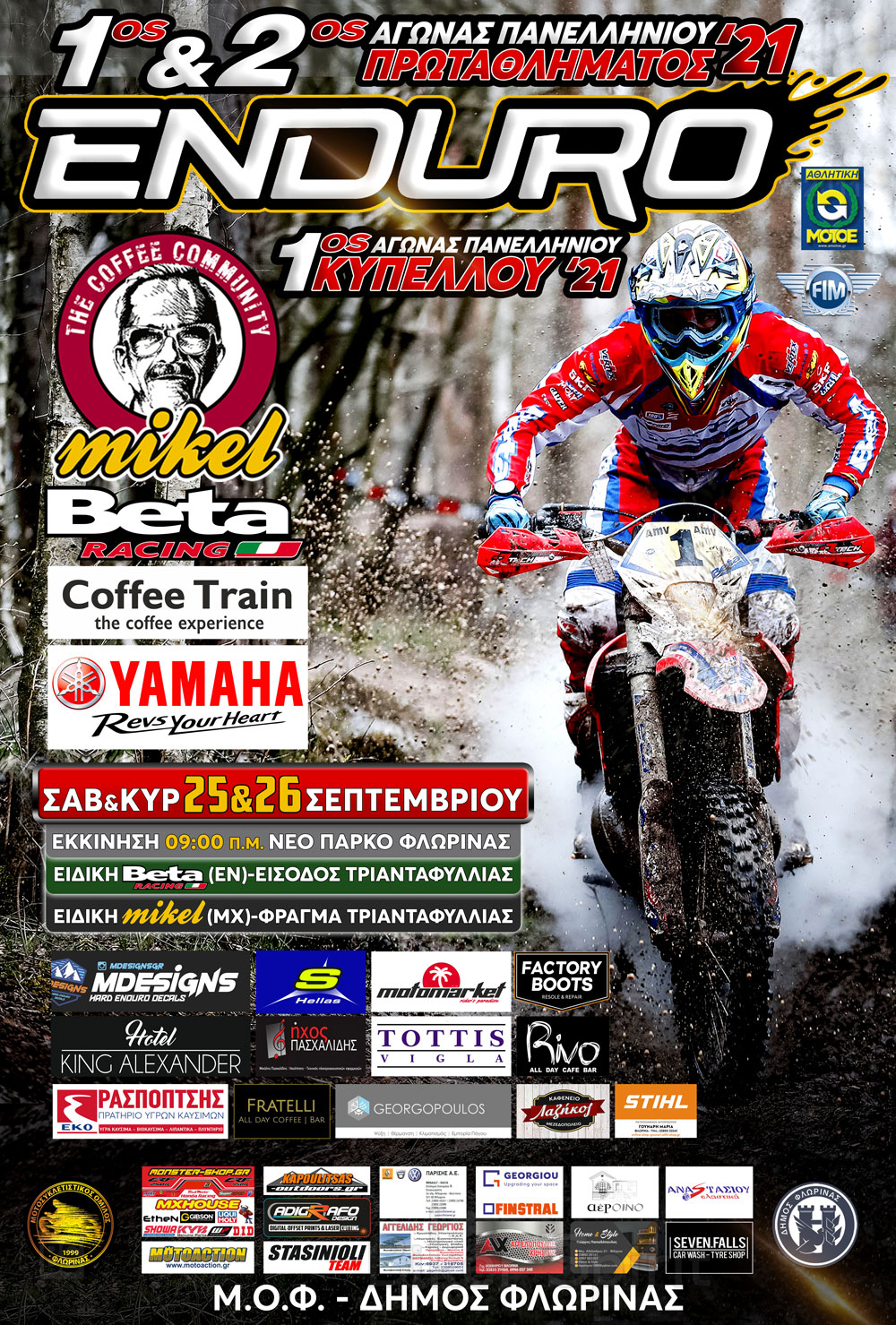 Το αθλητικό σωματείο Μοτοσυκλετιστικός Όμιλος Φλώρινας, διοργανώνει τον 1ο& 2ο Αγώνα του Πανελληνίου Πρωταθλήματος ENDURO 2021 & τον 1ο αγώνα Κυπέλλου ENDURO 2021 στις 25 & 26 Σεπτεμβρίου 2021 στην Φλώρινα