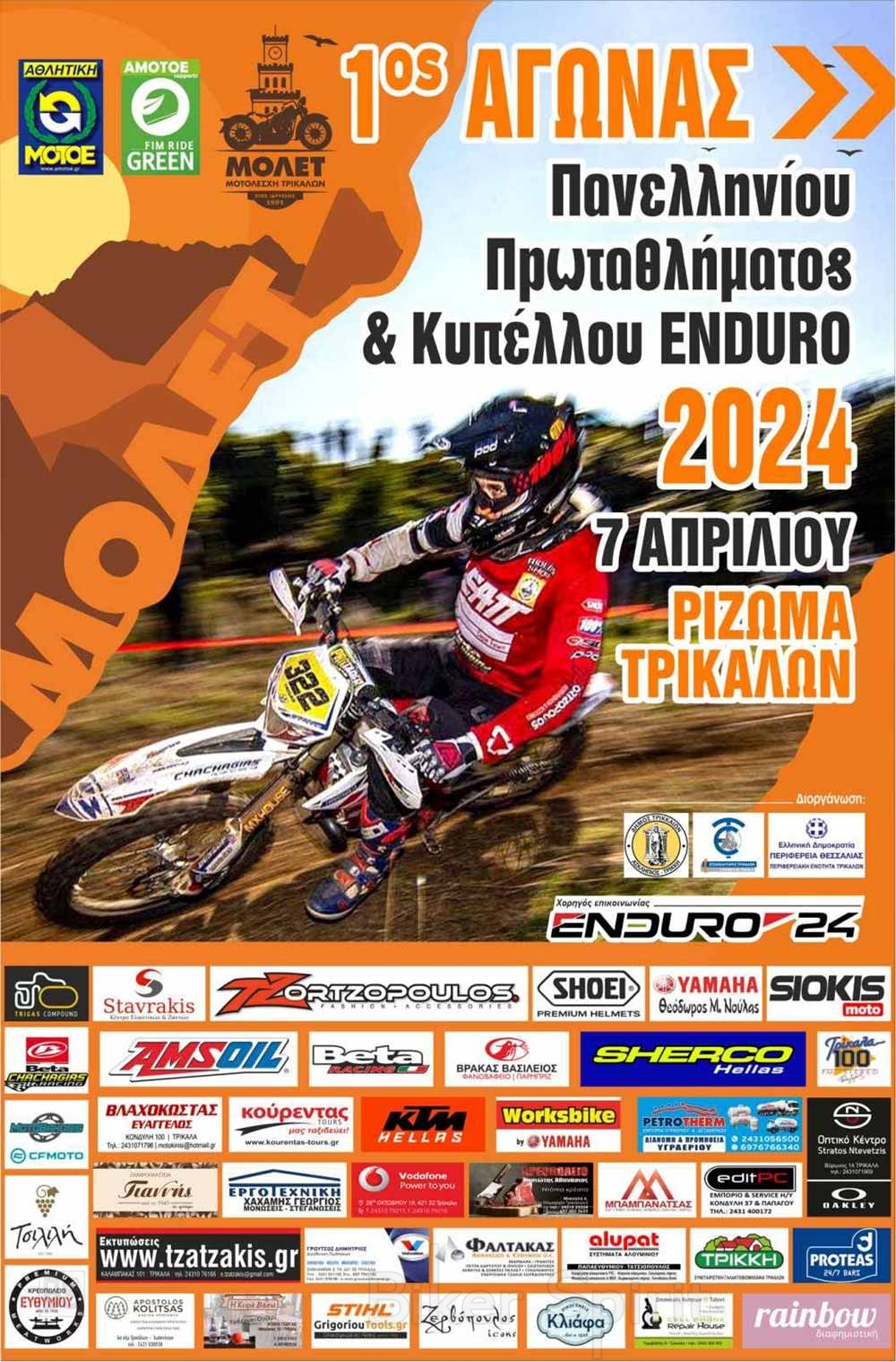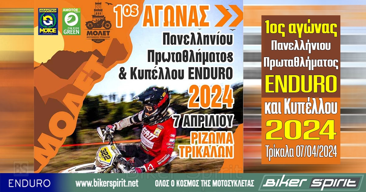 Το αθλητικό σωματείο ΜΟΤΟΛΕΣΧΗ ΤΡΙΚΑΛΩΝ (ΜΟΛΕΤ) διοργανώνει τον 1ο αγώνα για το Πανελλήνιο Πρωτάθλημα Enduro και Κύπελλο Enduro 2024