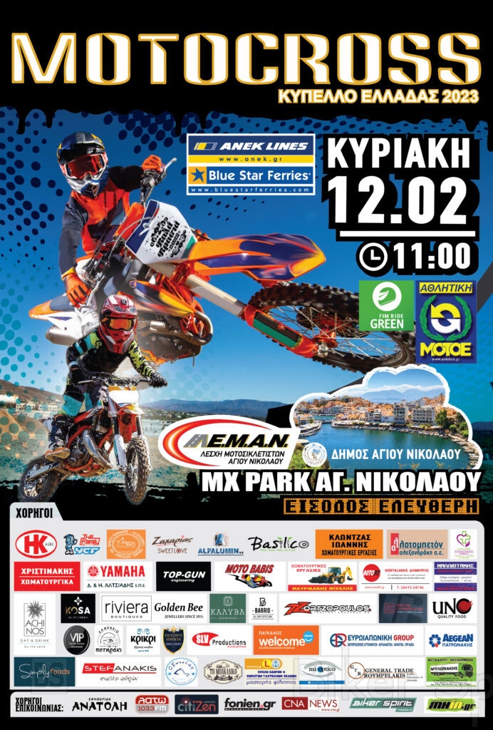 Το Αθλητικό Σωματείο ΛΕ.Μ.Α.Ν., διοργανώνει τον 1ο Αγώνα του Κυπέλλου Ελλάδος Motocross 2023, στις 12 Φεβρουαρίου 2023 στη πίστα Motocross ΖΟΥΡΙΑΣ κοινότητας ΚΡΙΤΣΑΣ Λασιθίου.