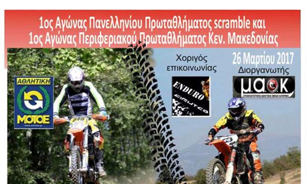 Το Αθλητικό Σωματείο ΜΟ.ΛΕ.Κ (Μοτοσυκλετιστικη Λέσχη Καλαμπάκας) ,μετά από έγκριση της Αθλητικής ΜΟΤΟΕ διοργανώνει τον 1ο Αγώνα SCRAMBLE για το Πρωτάθλημα Κεντρικής Ελλάδας 2017 ο οποίος θα διεξαχθεί την Κυριακή 26 ΜΑΡΤΙΟΥ 2017 στην Καλαμπάκα.
