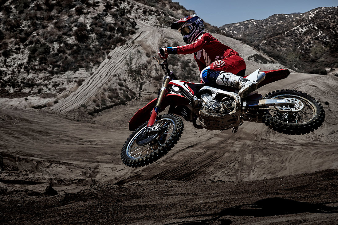 Η CRF450R του 2017 εξελίχθηκε με βάση τα στοιχεία από τις ομάδες ΑΜΑ και ΜΧ GP της Honda, με γνώμονα την κορυφαία εκκίνηση από στάση, την είσοδο στην πρώτη στροφή και το χρόνο γύρου. Με νέο κινητήρα που αποδίδει 11% περισσότερη μέγιστη ισχύ σε συνδυασμό με ένα πλαίσιο που πραγματικά την αξιοποιεί πλήρως, η 2017 CRF450R είναι ισχυρότερη και πιο ακριβής.
