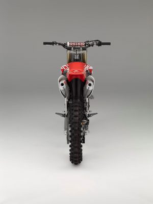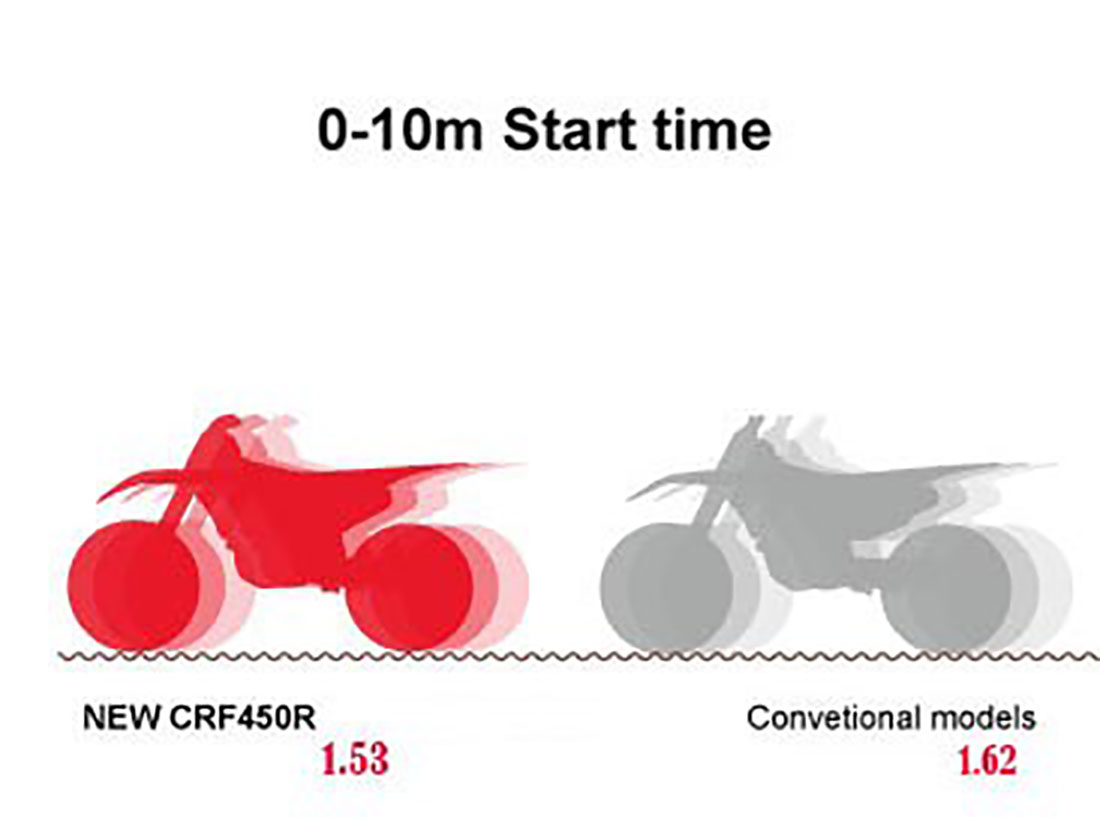 «Έχει γίνει ολοκληρωτική αλλαγή μοντέλου στη CRF450R. Δεν αφήσαμε τίποτα στην τύχη και δεν κάναμε κανένα συμβιβασμό στην προσπάθειά μας να προσφέρουμε στους πελάτες ένα εργαλείο που να βρίσκεται μπροστά από τον ανταγωνισμό. Στόχος μας ήταν να δημιουργήσουμε ένα μοντέλο με εξαιρετικές επιδόσεις κινητήρα, άριστη πρόσφυση πίσω τροχού και χαμηλό κέντρο βάρους – για να πετύχουμε 5% βελτιωμένη επιτάχυνση έναντι του προηγούμενου. Η φράση που χαρακτηρίζει την εξέλιξη ήταν ‘Απόλυτη Επιτάχυνση’.