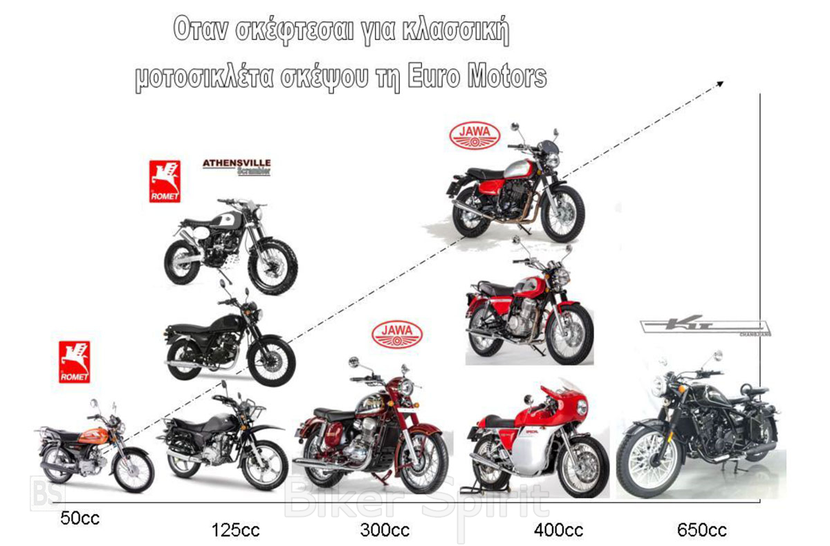 Επίσης από το 2019 η Euro Motors ξεκίνησε την αντιπροσώπευση της Πολωνικής ROMET [www.romet.euromotors.gr], διαθέτοντας έτσι factory customised μοτοσικλέτα ακόμη και στα 50 κ.εκ.