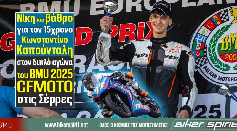 National Championships - BMU Νίκη και βάθρο για τον 15χρονο Κωνσταντίνο Καπούνταλη στον διπλό αγώνα του Ευρωπαϊκού πρωταθλήματος BMU 2025 στην κατηγορία CFMOTO στις Σέρρες 16 April 2025 BikerSpirit BMU, BMU 2025 1 min read Share this: Share on Facebook (Opens in new window) Facebook Share on X (Opens in new window) X Share on LinkedIn (Opens in new window) LinkedIn Print (Opens in new window) Print More Share on Reddit (Opens in new window) Reddit Share on Tumblr (Opens in new window) Tumblr Share on Pinterest (Opens in new window) Pinterest Read More