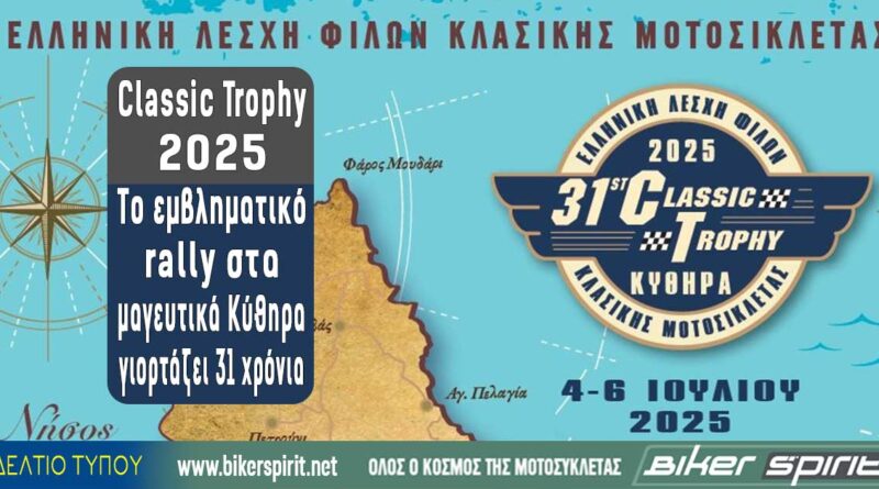 ΔΕΛΤΙΑ ΤΥΠΟΥ Classic Trophy 2025 – Το εμβληματικό rally στα μαγευτικά Κύθηρα γιορτάζει 31 χρόνια 1 July 2025 BikerSpirit Classic Motorcycles GR, Classic Trophy 2025, Kythera Rally, Regularity Rally Greece, Λέσχη Κλασικής Μοτοσυκλέτας 2 min read Share this: Share on Facebook (Opens in new window) Facebook Share on X (Opens in new window) X Share on LinkedIn (Opens in new window) LinkedIn Print (Opens in new window) Print More Share on Reddit (Opens in new window) Reddit Share on Tumblr (Opens in new window) Tumblr Share on Pinterest (Opens in new window) Pinterest Read More