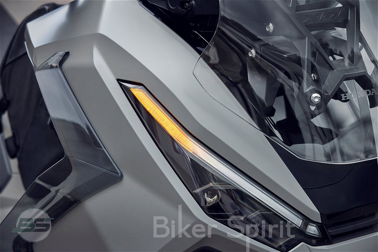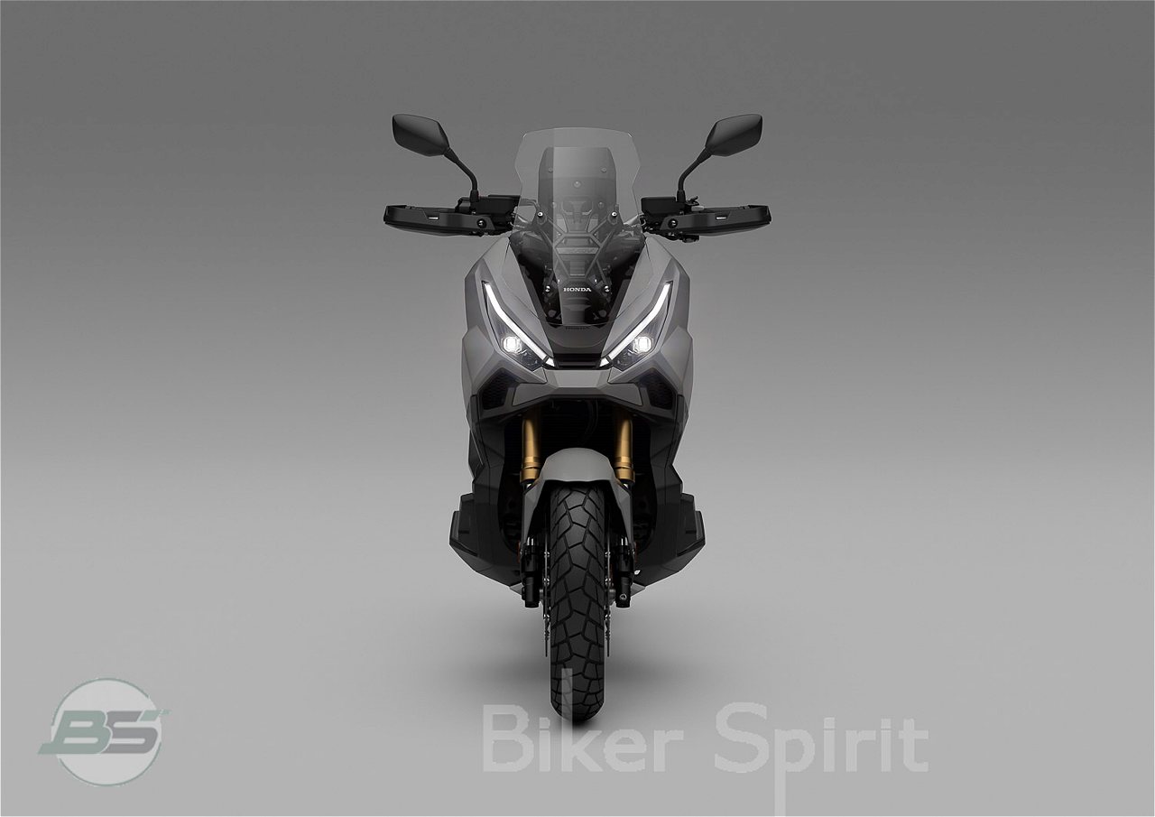 Τώρα εισέρχεται στο 25YM, με πιο σμιλεμένο εμπρός τμήμα το οποίο προκύπτει από το επανασχεδιασμένο εμπρός φέρινγκ, που χαρακτηρίζεται από έντονες γωνίες και δίνει στη μοτοσυκλέτα εμφάνιση που σχεδόν παραπέμπει σε καλλιτέχνημα της ιαπωνικής τεχνικής Origami. Τα εμπρόσθια φωτιστικά σώματα «δένουν αρμονικά» με τη δυναμική φιλοσοφία του X-ADV και αποτελούνται από δυο προβολείς LED με φώτα ημέρας [Daytime Running Lights (DRL)] και διακριτικά ενσωματωμένα φλας. Η τεχνική της Honda’s ‘hidden eye’ με μαύρα τμήματα να πλαισιώνουν τους φακούς των προβολέων, αναδεικνύουν ακόμα καλύτερα τα φώτα ημέρας. Η Honda επέλεξε επίσης το βιώσιμο υλικό DurabioTM σε συνδυασμό με άλλα ανακυκλωμένα πλαστικά και υλικά από καουτσούκ για τα πάνελ της μοτοσυκλέτας.