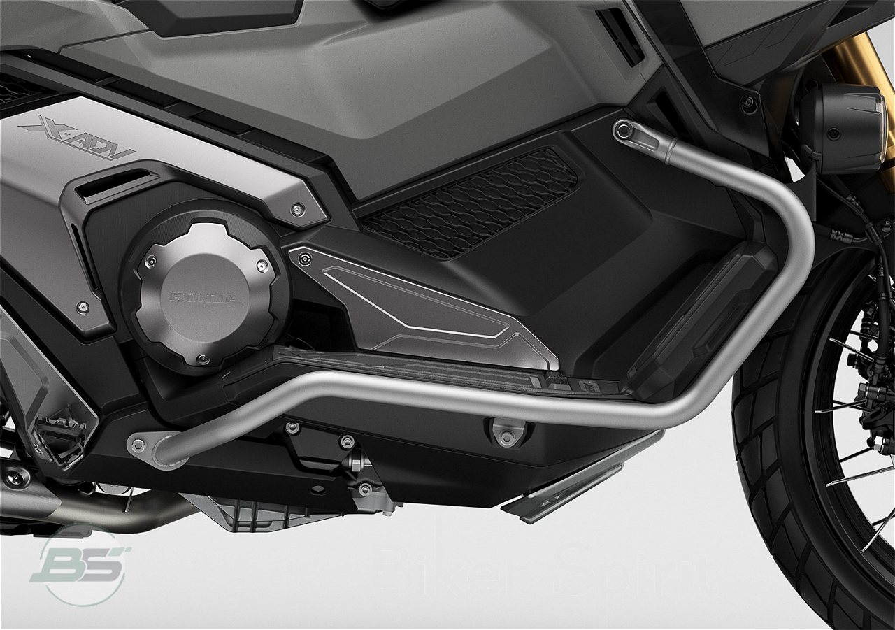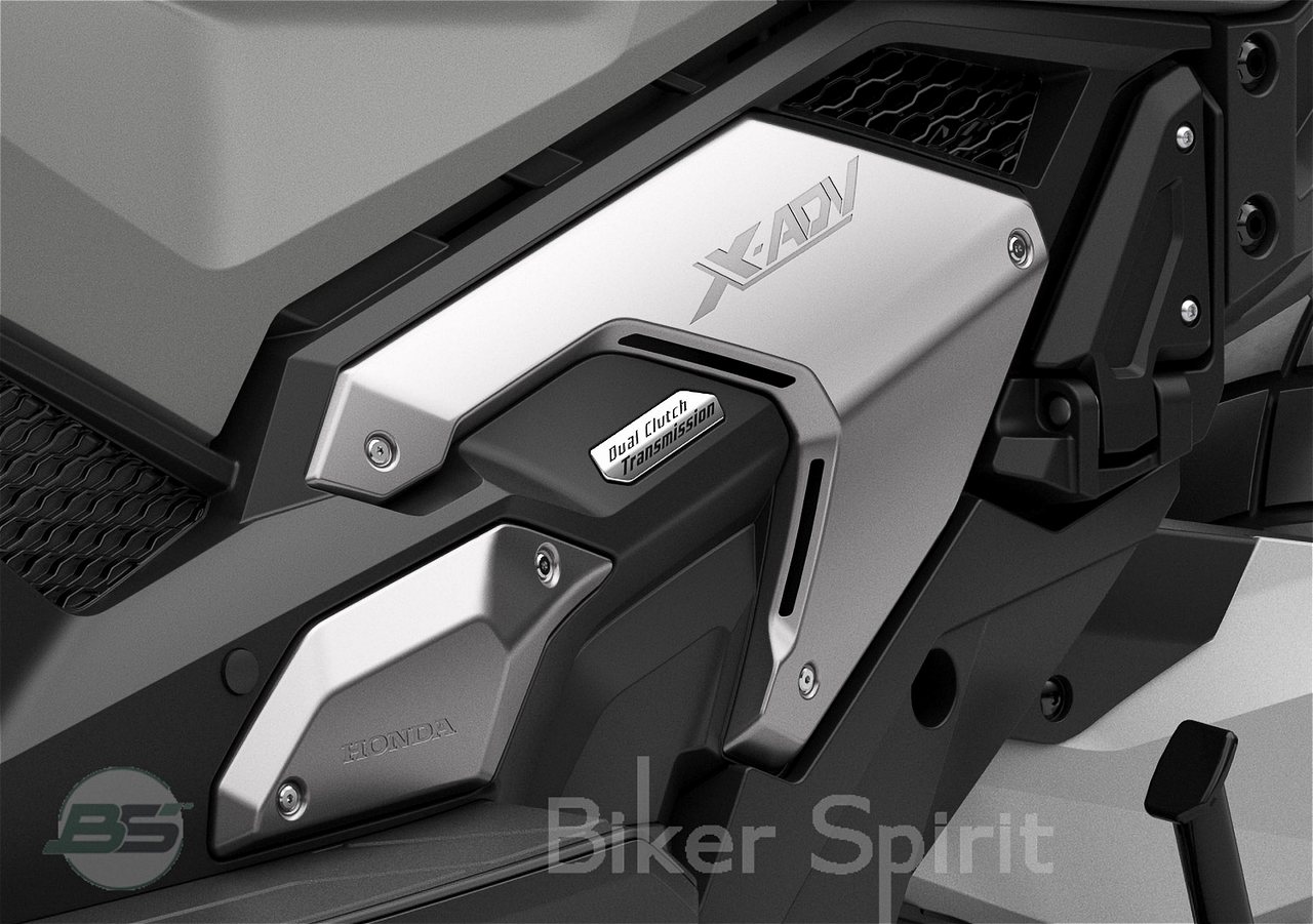 Ανθεκτικές πλαστικές χούφτες εκτρέπουν τον αέρα και τη βροχή και παρέχουν πρόσθετη προστασία για τις μανέτες και τα χέρια του αναβάτη από πέτρες που εκσφενδονίζονται σε συνθήκες εκτός δρόμου. Μια αλουμινένια ποδιά προστατεύει επιπλέον το κάτω τμήμα του X-ADV.