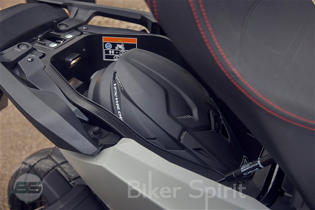 - Μεγάλος αποθηκευτικός χώρος 22 λίτρων φιλοξενεί μία θύρα USB–C κάτω από τη σέλα, ντουλαπάκι με περισσότερο διαθέσιμο χώρο