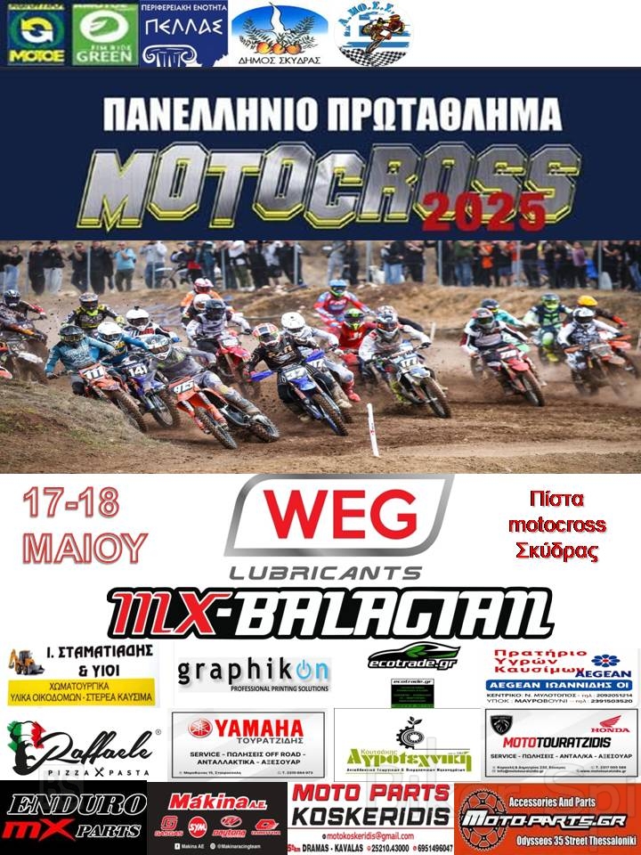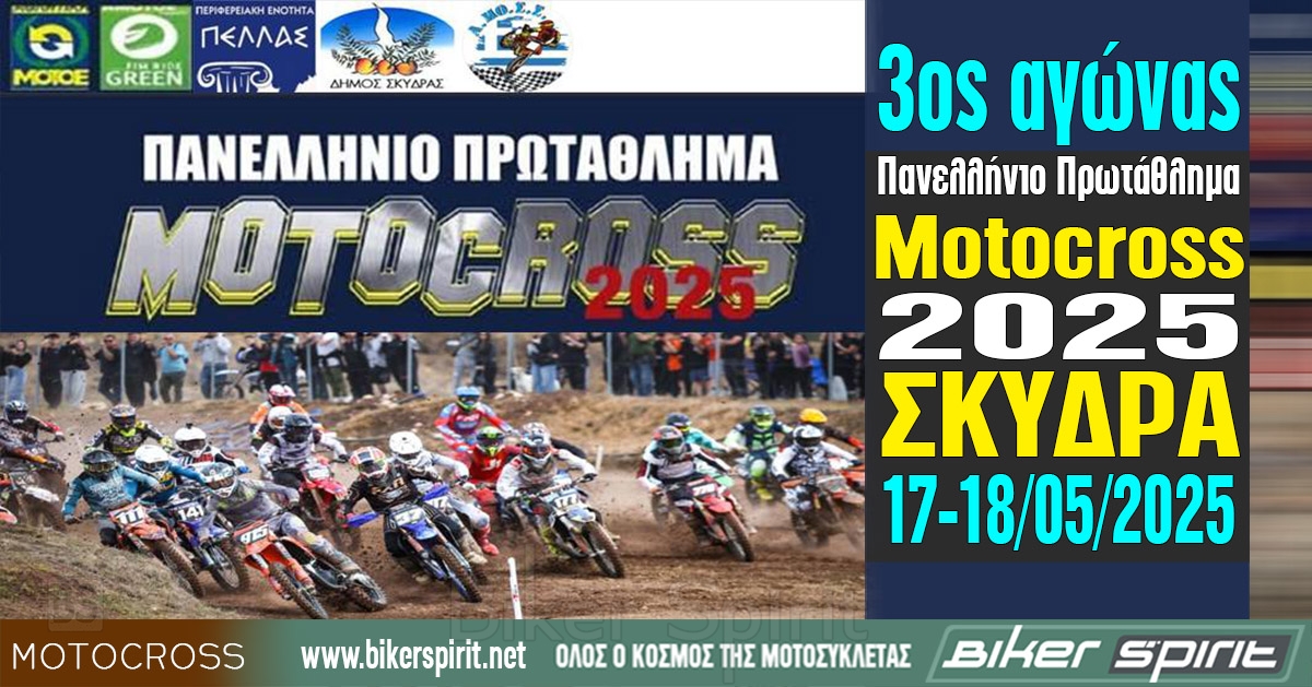 Το αθλητικό σωματείο A.MO.Σ.Σ. διοργανώνει στις 17 -18/5/2025 τον 3ο αγώνα του Πανελλήνιου Πρωταθλήματος Motocross 2025, στην πίστα Motocross Σκύδρας.