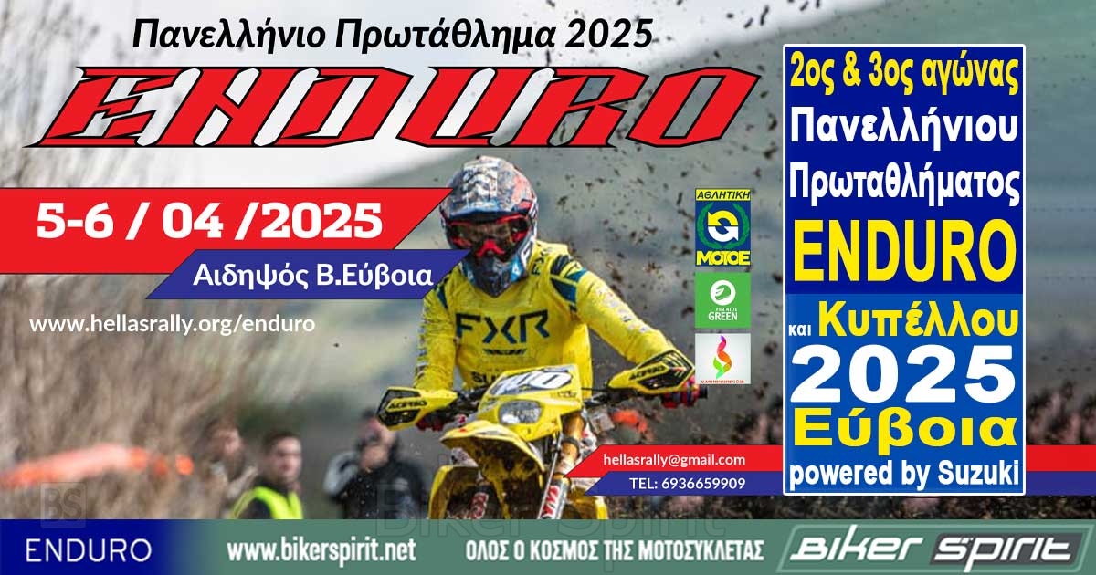 Τo Πανελλήνιο Πρωτάθλημα και Κύπελλο Enduro συνεχίζει την δυναμική του πορεία για το 2025 στην Αιδηψό Βόρειας Εύβοιας στις 5&6 Απριλίου