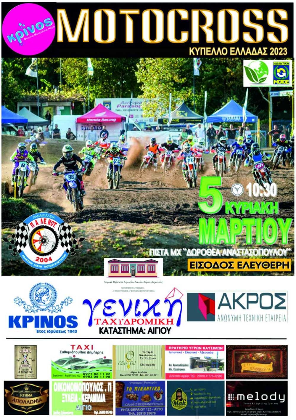 Το Αθλητικό Σωματείο Π.Α.ΛΕ.ΜΟΤ, διοργανώνει τον 2ο Αγώνα του Κυπέλλου Ελλάδος Motocross 2023, στις 5 Μαρτίου 2023 στη πίστα Motocross «ΔΩΡΟΘΕΑ ΑΝΑΣΤΑΣΟΠΟΥΛΟΥ» στο ΑΙΓΙΟ.