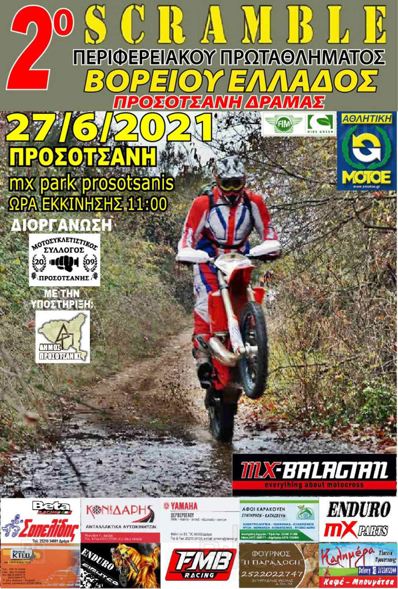 Το αθλητικό σωματείο ΜΟ.Σ.Π. με αριθμό Αθλητικής Αναγνώρισης ΧΜ 89 μετά από έγκριση της Α.ΜΟΤ.Ο.Ε διοργανώνει την 27/06/2021τον 2οscramble Αγώνα του Περιφερειακού Πρωταθλήματος SCRAMBLE ΒΟΡΕΙΟΥ Ελλάδος για το έτος 2021.