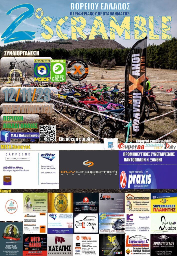 Το αθλητικό σωματείο Μ.Ο.Ξ. διοργανώνει τον 2ο Αγώνα του Περιφερειακού Πρωταθλήματος SCRAMBLE Βορείου Ελλάδος 2023, στις 12 Νοεμβρίου 2023 στην Ξάνθη.