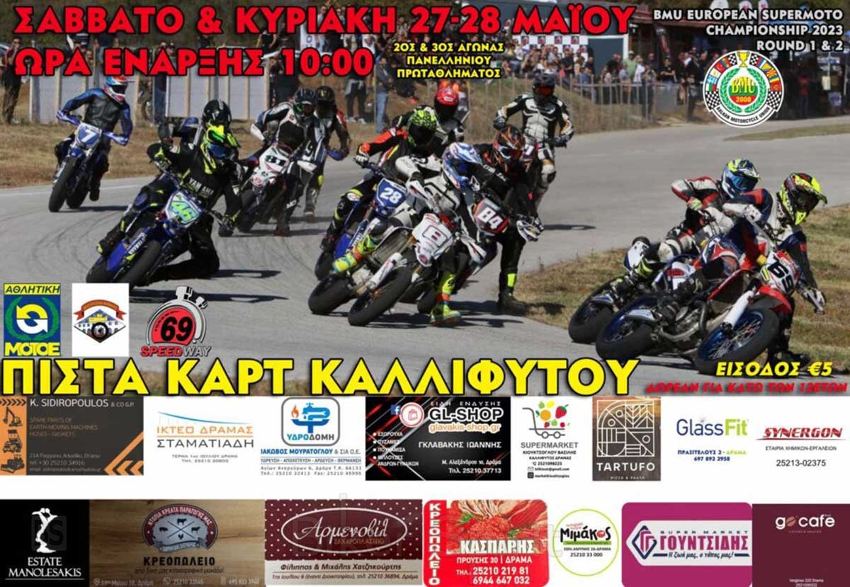 Το αθλητικό σωματείο ΜΟΤΟΛΕΣΧΗ ΚΑΒΑΛΑΣ, διοργανώνει, τον 2ο και 3οαγώνα του Πανελληνίου Κυπέλλου Super Moto 2023 στις 27 & 28-05-2023 στην πίστα 69 SPEEDWAY στην Καλλίφυτο Δράμας