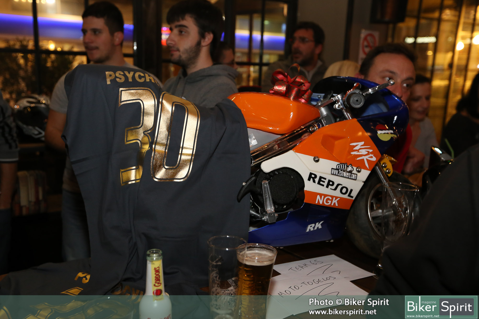 Τα δώρα κέρδισαν οι: Kostakis125 ένα ζευγάρι γάντια από την Moto Togelos, ο Dee και ο Μιχάλης Γιατράς από μια συμμετοχή Track Day από την Team 65, οι TDR250 και Άγγελος Γιατράς από μια συλλεκτική Μπλούζα του Αντρέα Ψυχογυιού από την συμμετοχή του στο Isle of Man, οι Giannis tzr και Russell από μια συμμετοχή Track Day από την Extreme Trackdays του Σωτήρη Ζαφειρόπουλου, όπου ήταν και στην εκδήλωση και τέλος ο Lans κέρδισε ένα Mini Moto από την Μότο Νομικός.