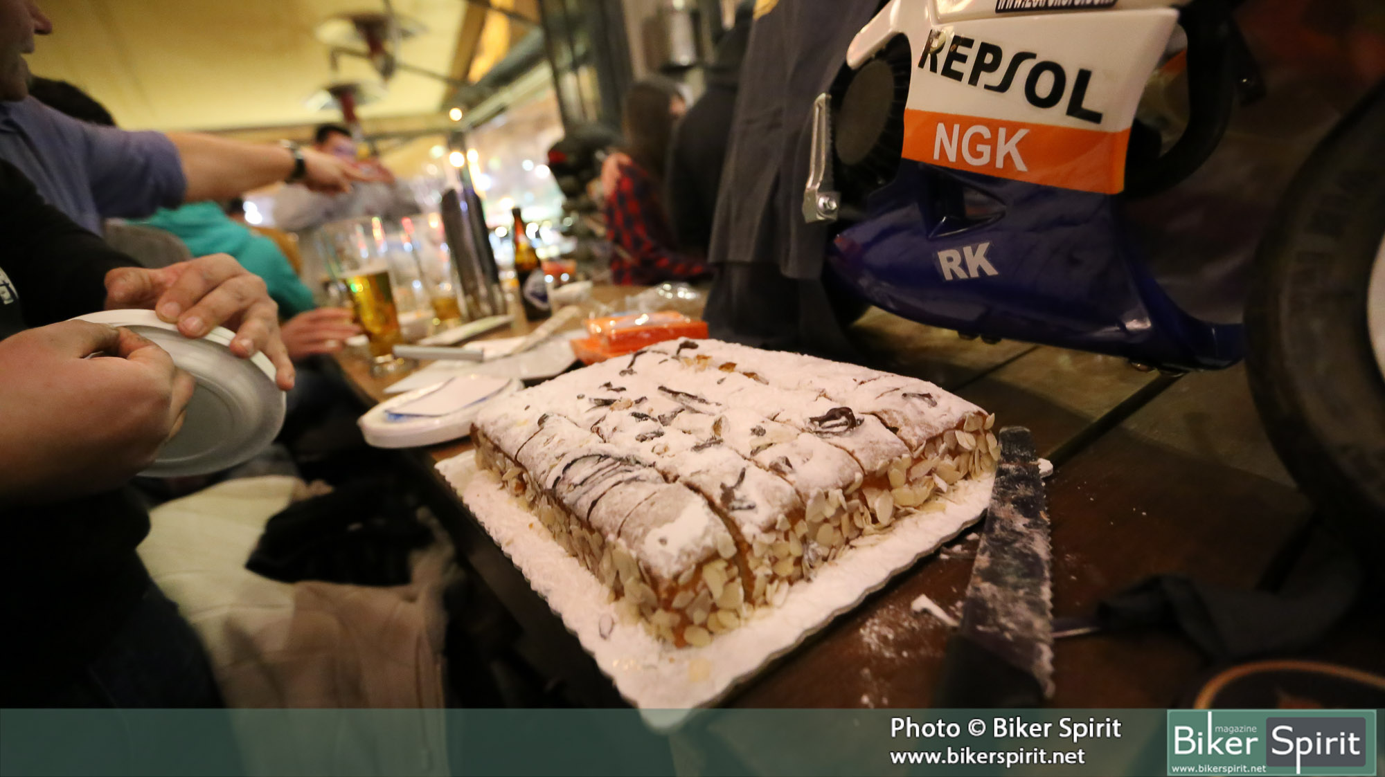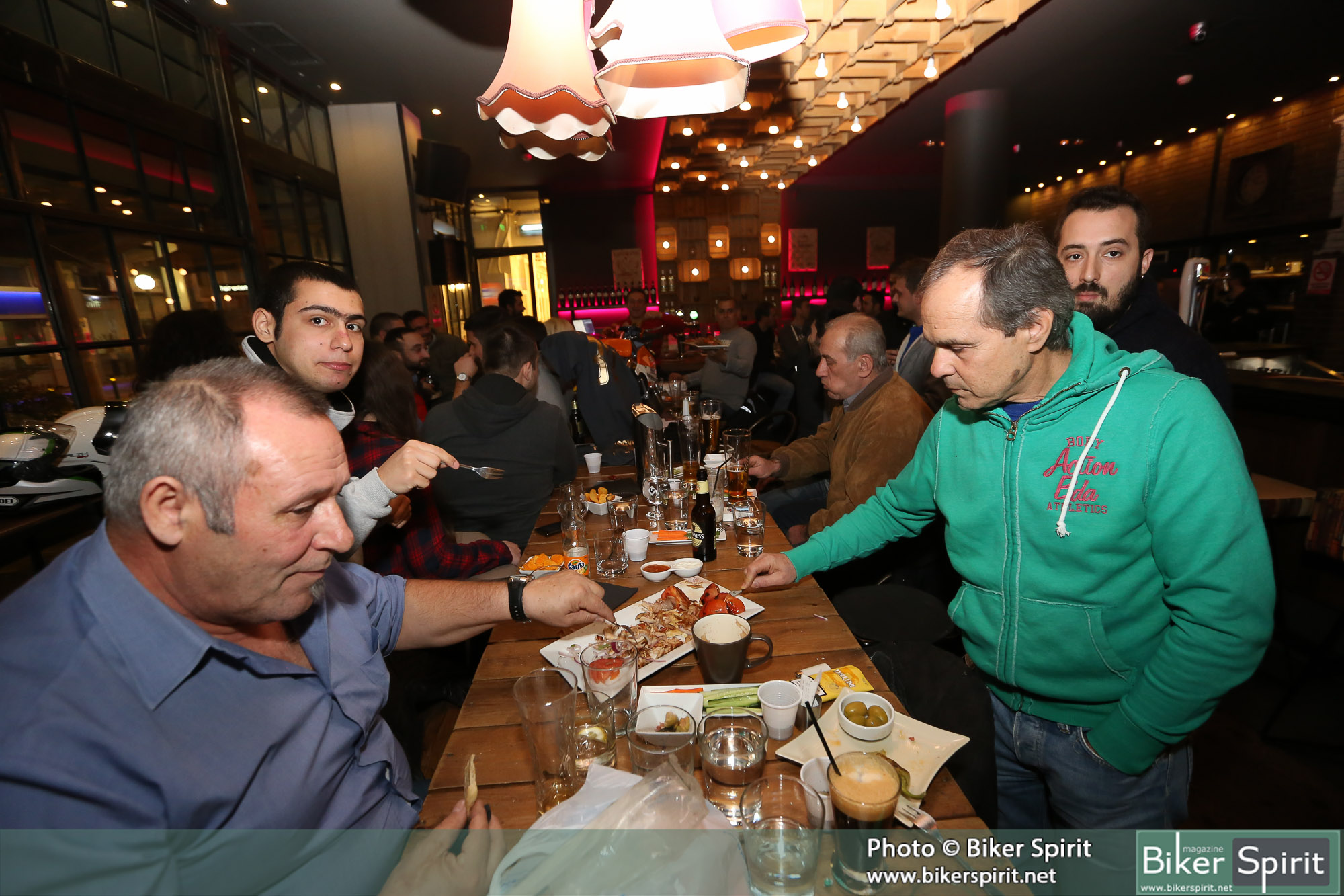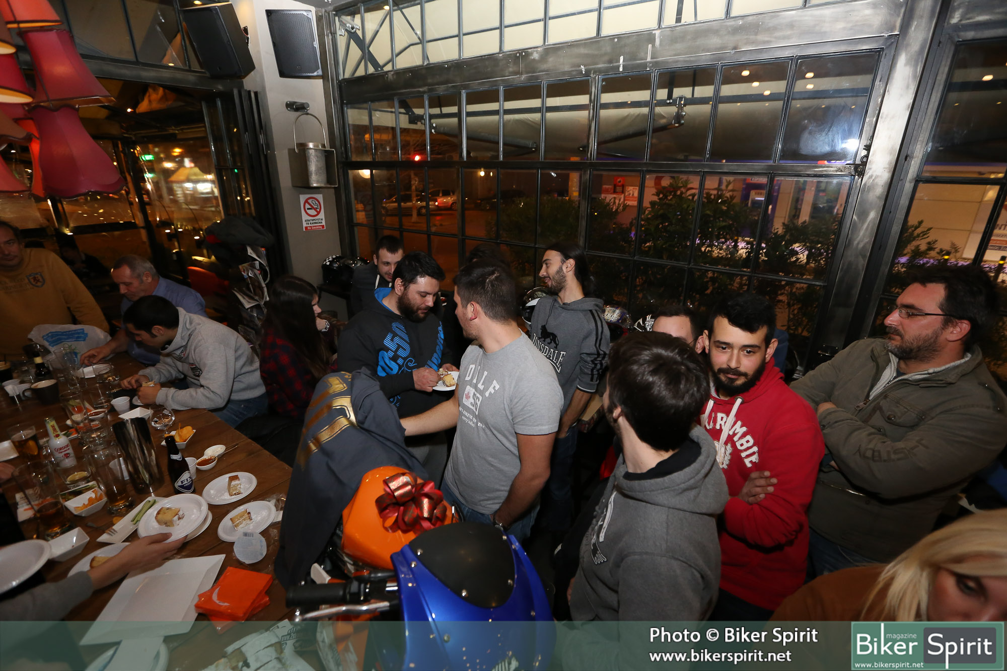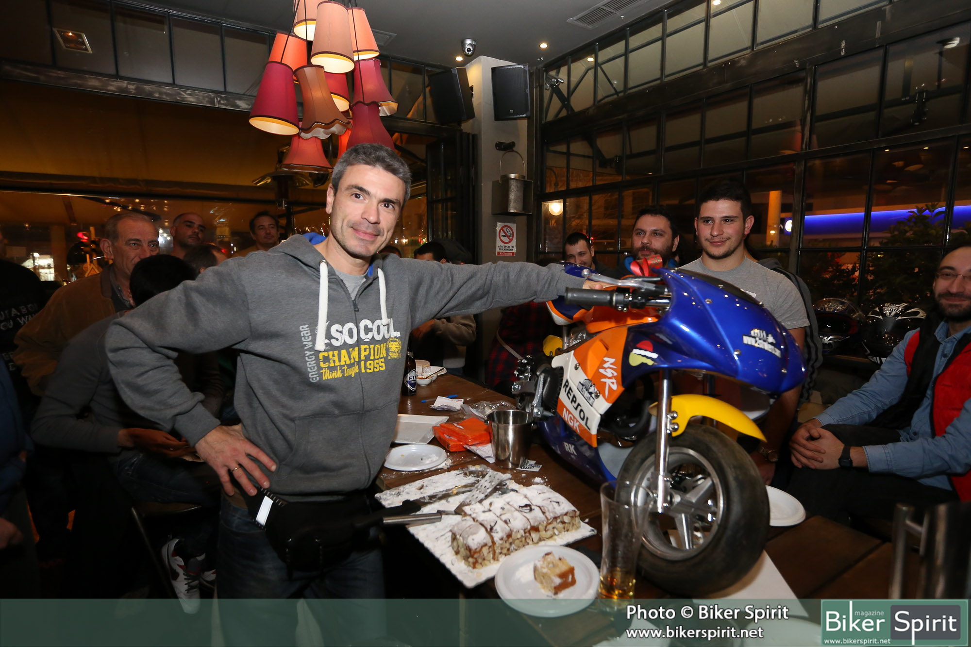 Πολύς κόσμος μαζεύτηκε στο ζεστό καφέ στο Περιστέρι για να κόψουν την πίτα . Έξω από το καφέ πολλές ήταν οι δίχρονες και όχι μονό μοτοσυκλέτες, παρόλο το κρύο !