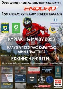 Το αθλητικό σωματείο Μοτοσικλετιστηκή Λεσχη Μητρόπολης Καρδίτσας διοργανώνει τον 3ο Αγώνα Πανελληνίου Πρωταθλήματος ENDURO και τον 1ο Αγώνα ENDURO Κυπέλλου Βορείου Ελλάδας για το 2023 στις 14 Μαϊου 2023 στα Καλύβια Πεζούλας (Λίμνη Πλαστήρα) στη Καρδίτσα.