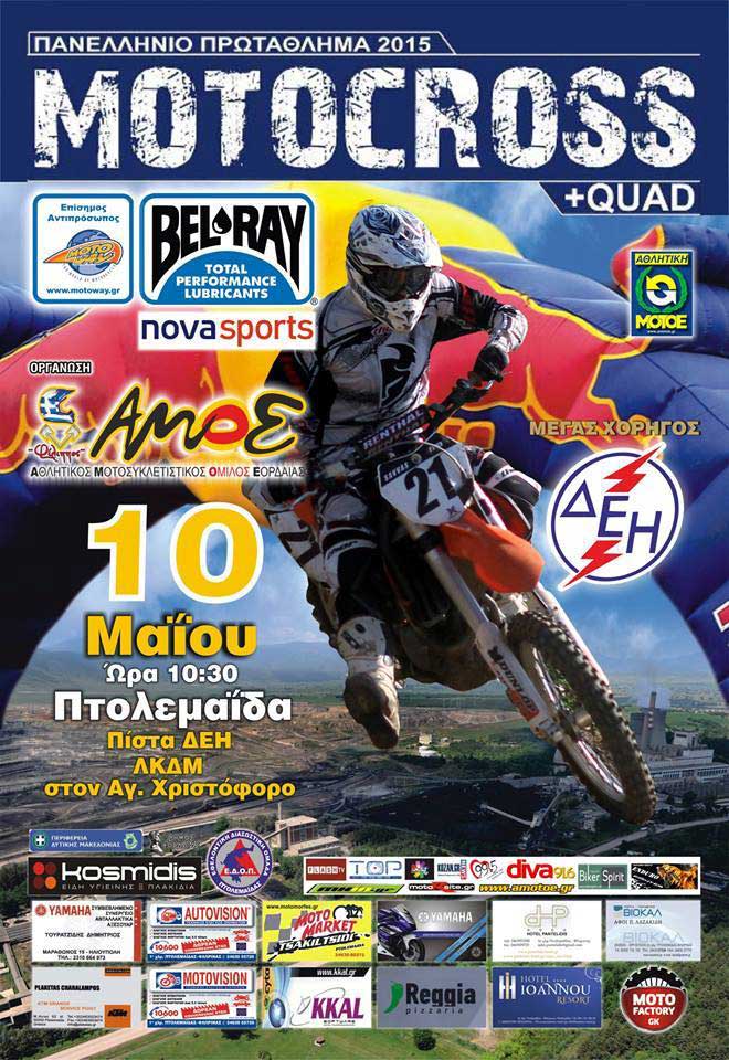 Το Αθλητικό Σωματείο ΑΘΛΗΤΙΚΟΣ ΜΟΤΟΣΥΚΛΕΤΙΣΤΙΚΟΣ ΟΜΙΛΟΣ ΕΟΡΔΑΙΑΣ (Α.Μ.Ο.Ε. «ΦΙΛΙΠΠΟΣ») σε συνεργασία με το Λιγνιτικό Κέντρο Δυτ. Μακεδονίας διοργανώνει τον 4ο αγώνα του Πανελληνίου Πρωταθλήματος Motocross 2015, όπου θα διεξαχθεί στις 09-10 Μαΐου 2015, στην πίστα ΔΕΗ Α.Ε Λ.Κ.Δ.Μ. στην τοπική Κοινότητα Αγίου Χριστοφόρου του Δήμου Εορδαίας (Πτολεμαΐδα).