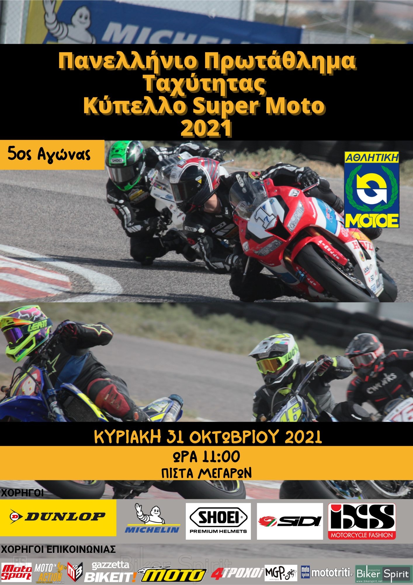 Η ΑΜΟΤΟΕ διοργανώνει τον 5ου και τελευταίο αγώνα του Πανελληνίου Πρωταθλήματος Ταχύτητας Ελλάδος και 5ου και τελευταίο αγώνα του Κυπέλλου Supermoto για την σεζόν 2021 στα Μέγαρα στις 30-31 Οκτωβρίου 2021