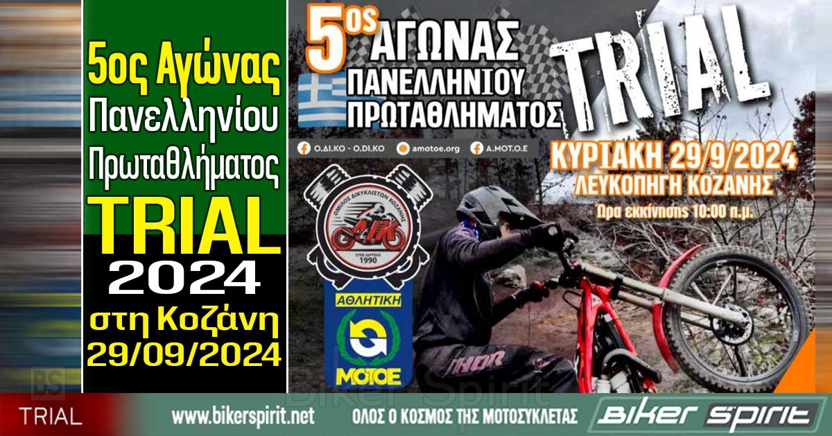 Το αθλητικό σωματείο Ο.ΔΙ.ΚΟ διοργανώνει την 29/09/2024 τον 5 Αγώνα του Πανελληνίου Πρωταθλήματος TRIAL για το 2024 στη Κοζάνη