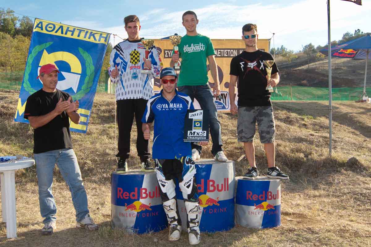 Η πρώτη εμφάνιση του ήδη πρωταθλητή της ΜΧ2, Δημήτρη Κοντολέτα (ΑΟΛΜΟλυμπίας, Yamaha) στην κατηγορία ΜΧ1 συνοδεύτηκε από μια κυριαρχική, τελικά, εμφάνιση με νίκες και στα δύο σκέλη του αγώνα. Και το τελικά αφορά ότι και οι 3 γνώριμοι πρωταγωνιστές της ΜΧ1, ο Δημήτρης Δημήτρης Βαγγελάκος (ΑΜΟΕορδαίας, Yamaha) στο α΄σκέλος, και ο ταχύτατος στις δοκιμές Γιώργος Ηλιόπουλος (ΠΑΛΕΜΟΤ Αιγίου, ΚΤΜ) και ο πεισματάρης Μανώλης Σκύβαλος (ΟΔΙΚΟζάνης) στο β’ σκέλος πίεσαν πολύ τον Κοντολέτα στην πορεία του για την διπλή νίκη ανεβάζοντας την αγωνία στα ύψη. Δυνατός, ειδικά στους πρώτους γύρους, ο Δημήτρης Μπαξεβάνης (Μοτολέσχη Καβάλας, Yamaha) ωραίες οι μάχες και για την 6άδα, των Γιάννη Πάσσα και Ακη Κοσμά. Αισθητή η απουσία του ήδη πρωταθλητή Παναγιώτη Κουζή, ένα ακόμα στοιχείο που αφήνει κάθε ενδεχόμενο ανοικτό για το 2014 όπου ο Κοντολέτας θα συμμετάσχει στην ΜΧ1. Χωρίς εκπλήξεις η τελική βαθμολογία, με τον Βαγγελάκο να κρατά την 2η θέση όπως και ο Σκύβαλος την 3η.