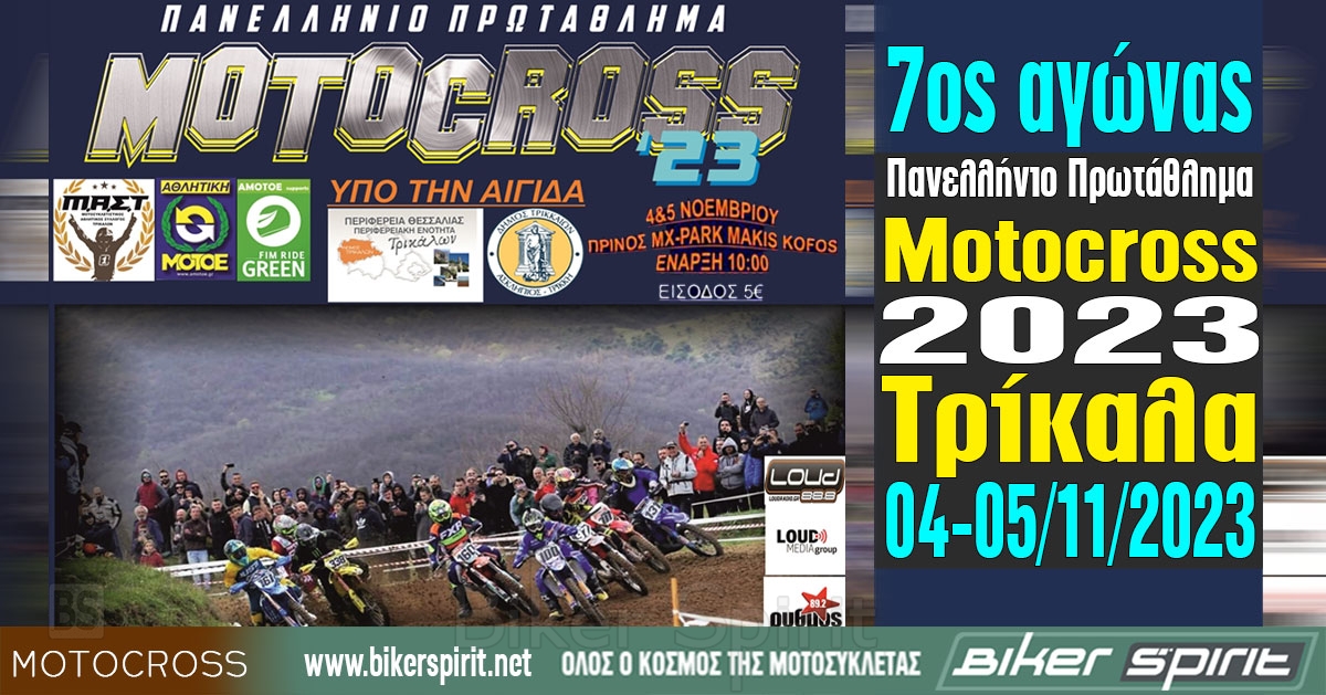 Το αθλητικό σωματείο Μ.Α.Σ.Τ., διοργανώνει τον 7ο (εξ αναβολής από 21-22 Οκτωβρίου) και τελευταίο Αγώνα του Πανελληνίου Πρωταθλήματος Motocross 2023, στα Τρίκαλα στις 04-05/11/2023.