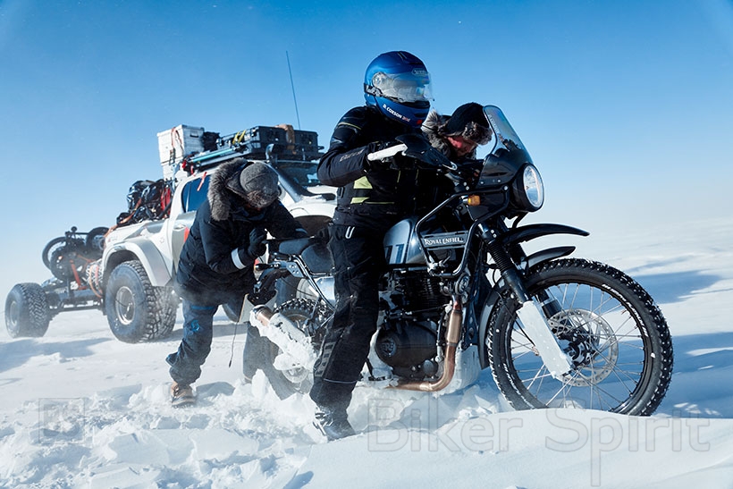 Για αυτήν την αποστολή, δύο Royal Enfield Himalayan προετοιμάστηκαν από το εργοστάσιο, με λειτουργικές αναβαθμίσεις για να μπορούν να οδηγηθούν στο χιόνι και τον πάγο για να λειτουργούν στις ακραίες συνθήκες της Ανταρκτικής. Οι μοτοσυκλέτες οδηγήθηκαν σε μια συμπαγή πίστα χιονιού στον Νότιο Πόλο, για να μειωθεί η αντίσταση της μοτοσικλέτας και να περιοριστούν οι εκπομπές στο απόλυτο ελάχιστο. Οι μοτοσυκλέτες αρχικά δοκιμάστηκαν σε μια μικρή πίστα χιονιού στον Νότιο Πόλο, για να ρυθμιστούν ώστε να επιτευχθεί η λιγότερη δυνατόν αντίσταση στην κίνηση και να ελαχιστοποιηθούν οι εκπομπές καυσαερίων. Η Royal Enfield είχε μεριμνήσει συνειδητά ώστε η αποστολή να μην αφήσει κανένα αποτύπωμα πίσω της, εκτός από τα ίχνη τροχών που θα χαθούν γρήγορα από την φυσική μετακίνηση του χιονιού. Σύμφωνα με την φιλοσοφία #LeaveEveryPlaceBetter της μάρκας, η ομάδα είχε διασφαλίσει ότι όλα τα απόβλητα, συμπεριλαμβανομένων των ανθρώπινων απορριμμάτων, επέστρεψαν στην αρχική βάση για την κατάλληλη επεξεργασία και απόρριψη.