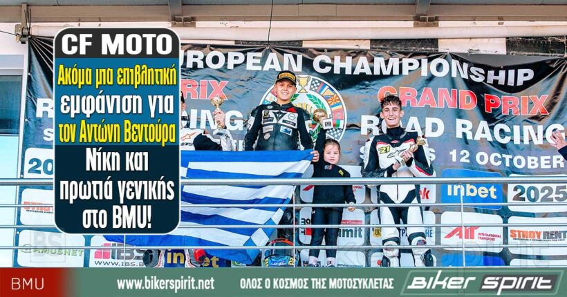 Το Σάββατο, στον προτελευταίο γύρο του BMU Road Racing Championship, ο νεαρός Έλληνας αναβάτης Αντώνης Βεντούρας κυριάρχησε στην κατηγορία CFMOTO300, προσθέτοντας ακόμη μία νίκη στη συλλογή του και βάζοντας ισχυρές βάσεις για την κατάκτηση του φετινού τίτλου.