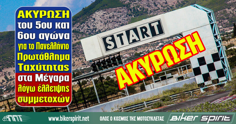 ΑΚΥΡΩΣΗ του 5ου και 6ου αγώνα για το Πανελλήνιο Πρωτάθλημα Ταχύτητας στα Μέγαρα λόγω έλλειψης συμμετοχών